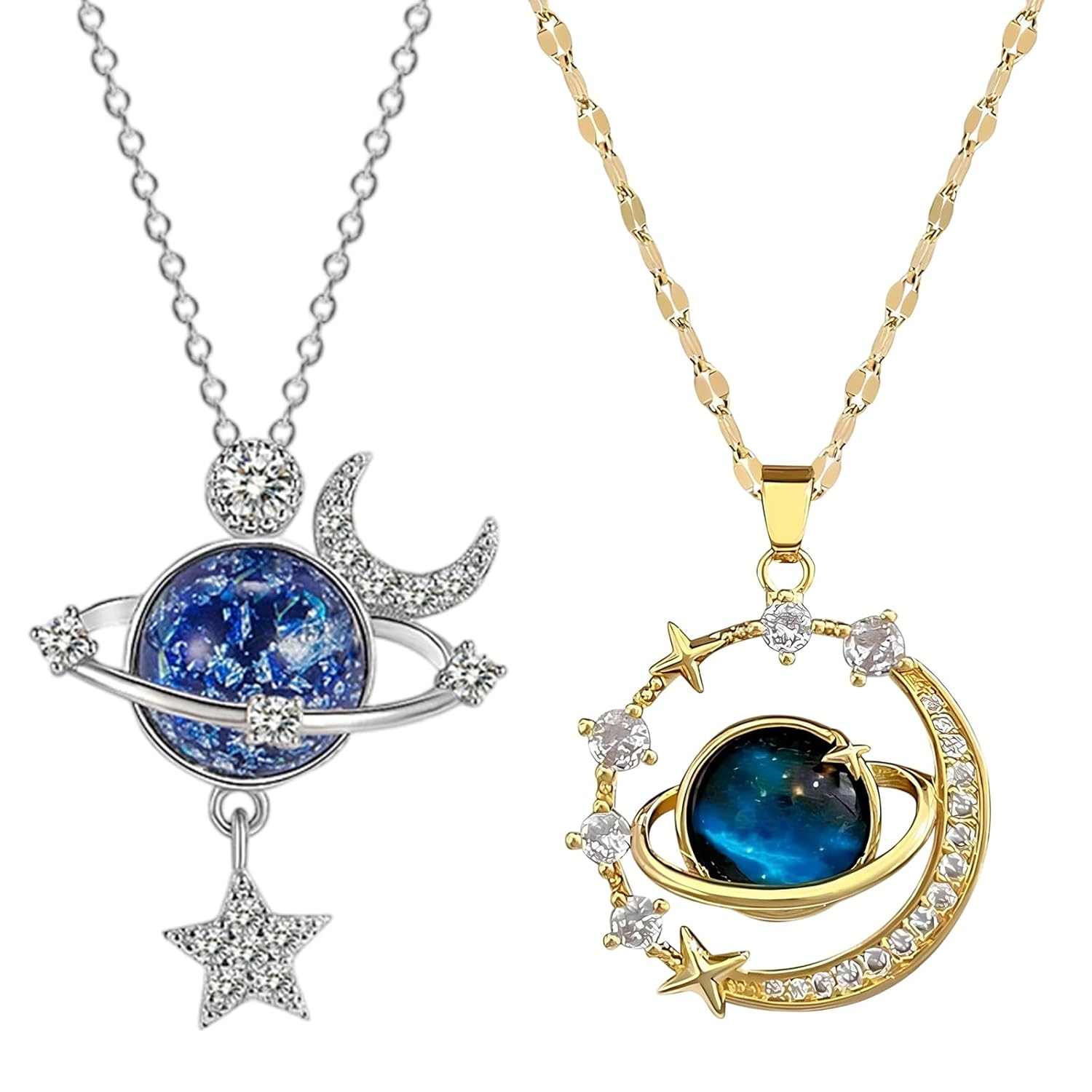 Be the first to review “2pcs Pendant Necklace For Women Special,Silver Zircon Star Moon Surround Fantasy Planet Necklaces, Symbol Of Friendship, Family, Love, Jewelry Necklace Gift For Daughter, Granddaughter, Ladies”