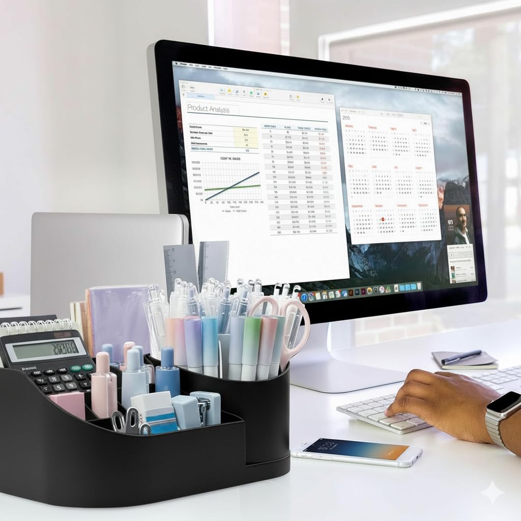 Multipurpose Desk Organizer : This desktop organizer is great for any space, such as an office, home, bathroom, living room, bedroom, vanity, dresser, worktop, and countertop used to store office, stationery, makeup, bathroom accessories, and worktop tools.