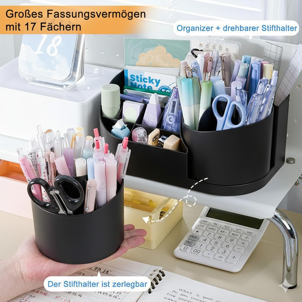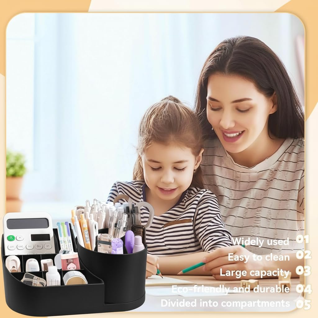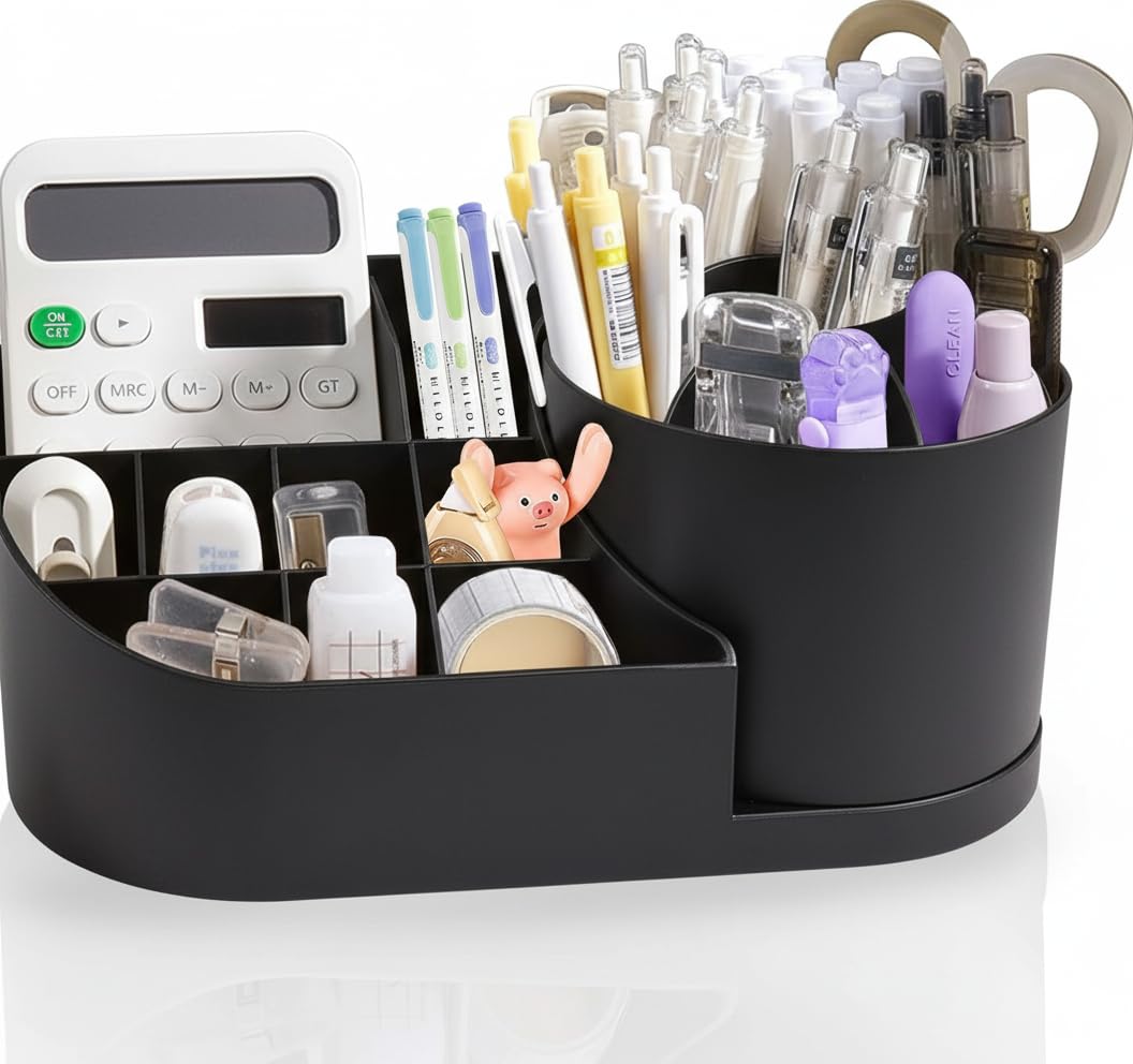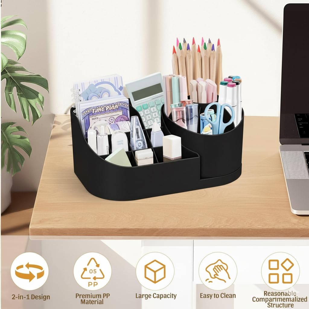 360 degree rotatable design:The 360 degree rotating pen holder organizer makes easier for you to organize and get the supplies on your desk, it spins smoothly all around without getting stuck. Easy to get from any angle, so that you can easily arrange your paint brushes, pens, colored pencils, scissors, crayons,eraser. keeps your stationery supplies organized and easy to find, and enables you to improve your working efficiency.