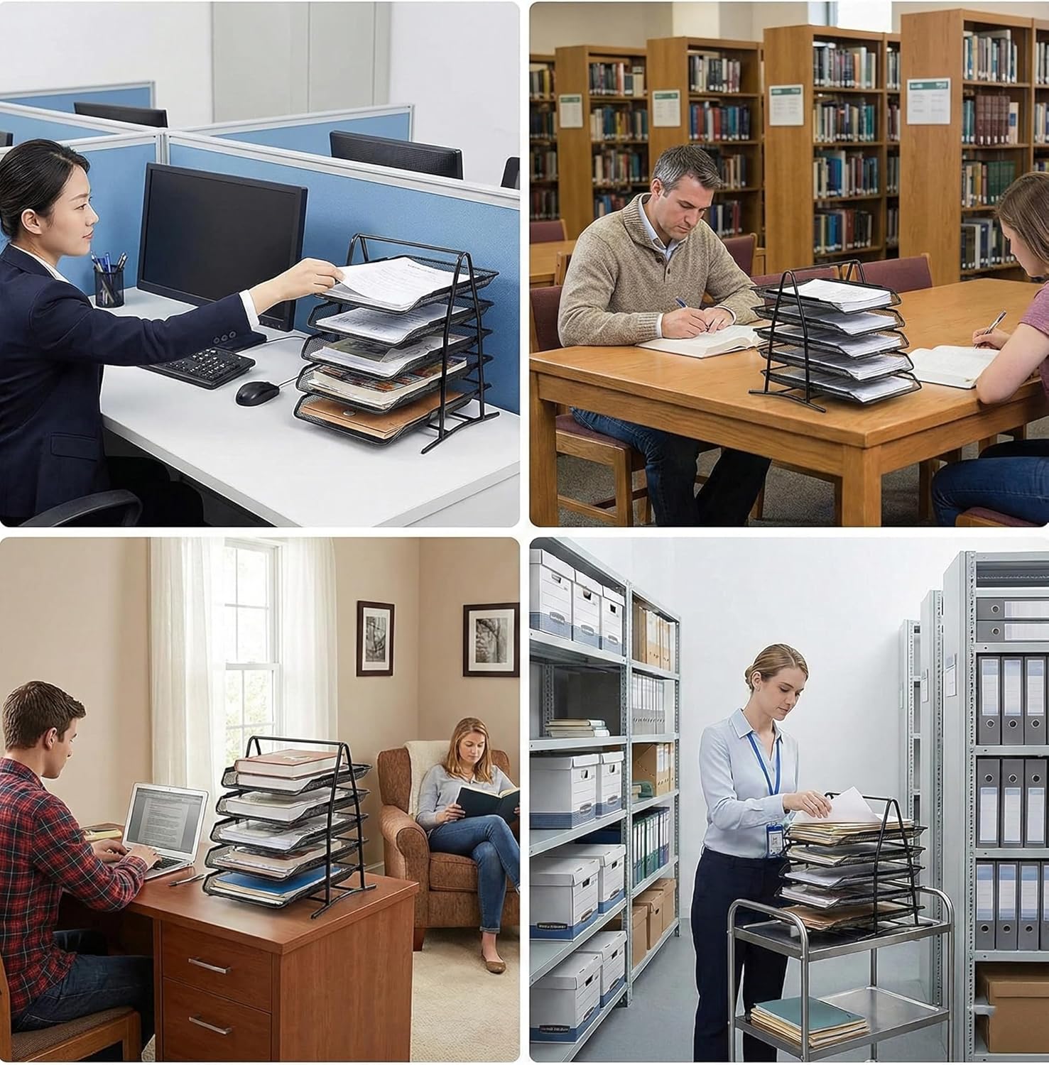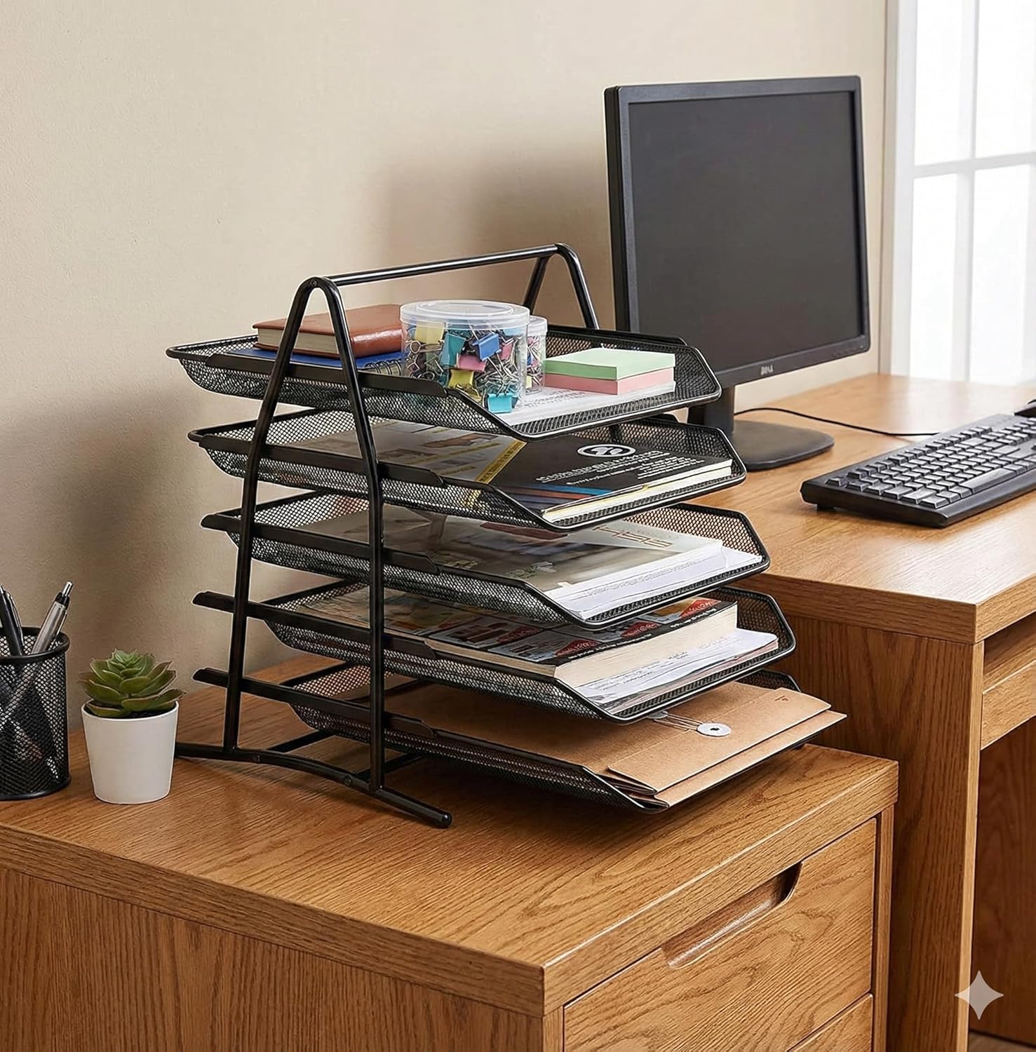 Clean up the clutter on your desk or work space with our 5-tray metal mesh organizer with 5 separate file storage levels allowing you to store all your frequently used files, binders, books, and papers