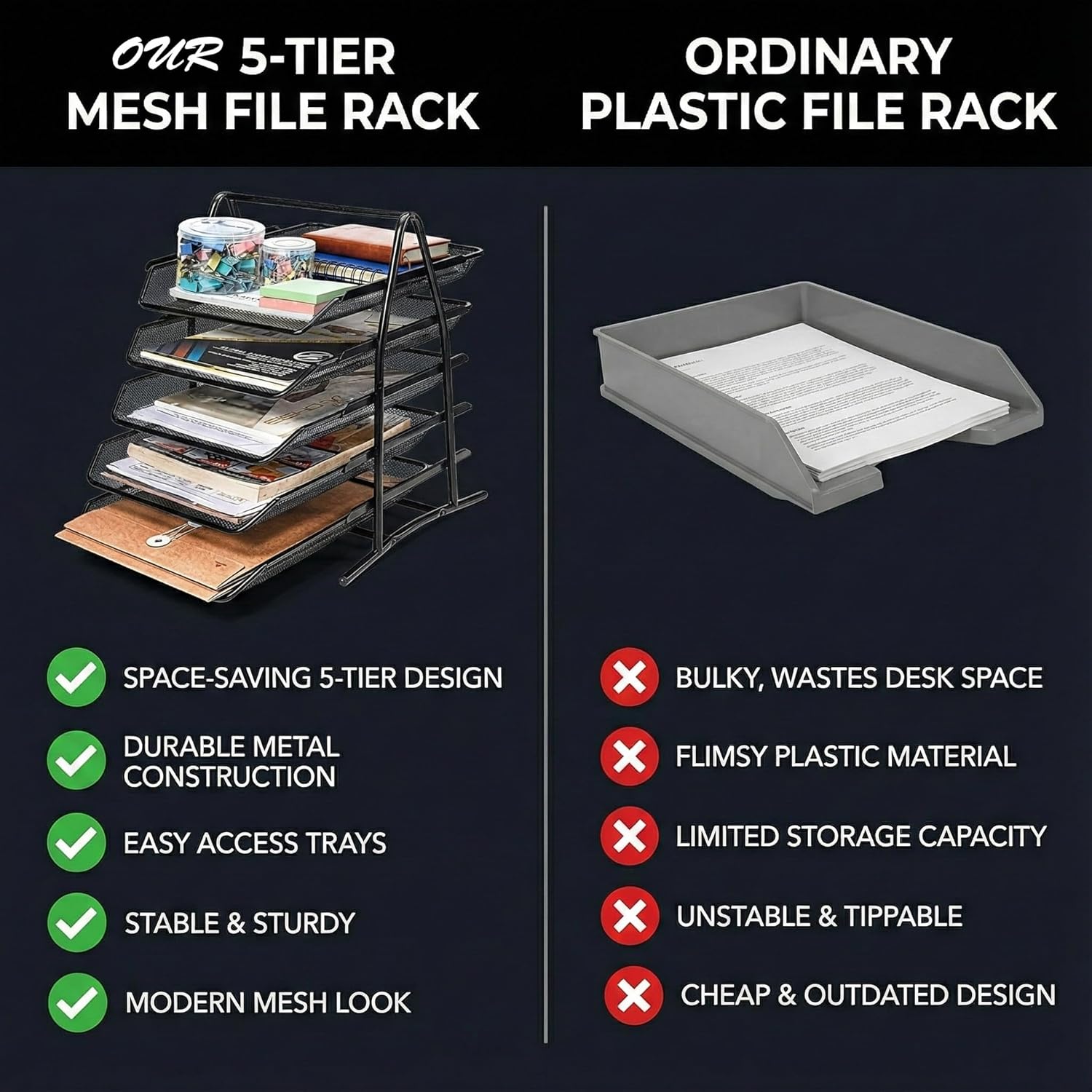Use your desk space more efficiently by keeping your important documents categorized and off your desk or floor with our 5-level metal mesh file organizer to help you stay organized
