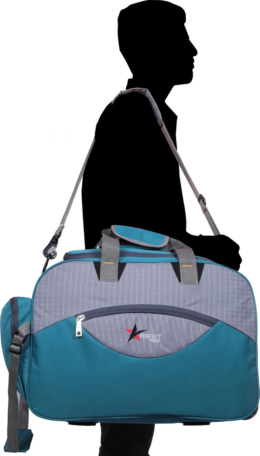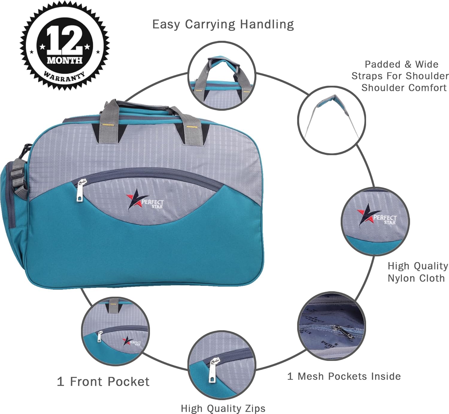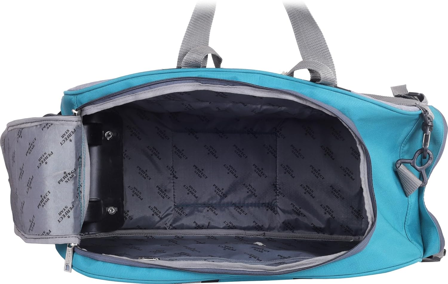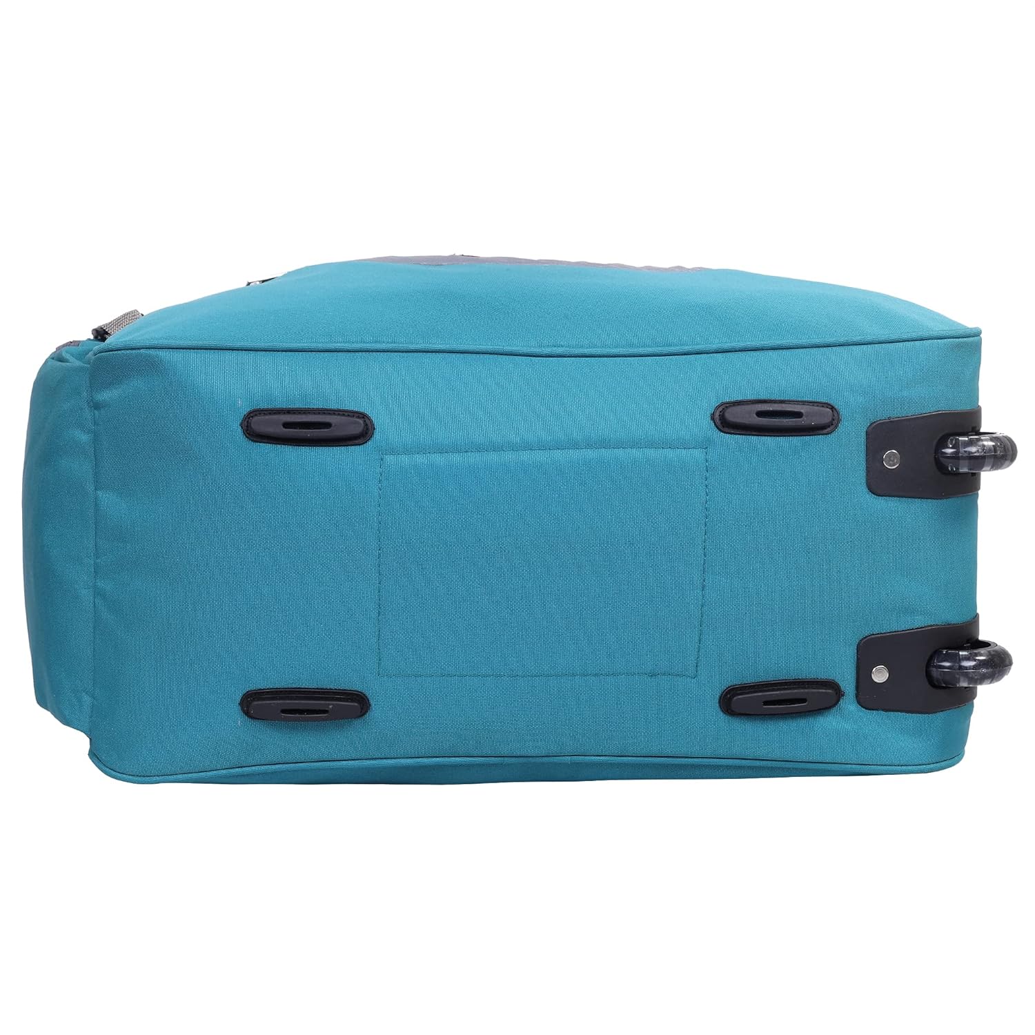 DURABLE CONSTRUCTION: Crafted with high-quality polyester fabric in attractive turquoise and grey colour combination, reinforced stitching at stress points, and sturdy zippers designed to withstand frequent travel use