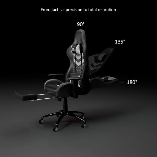 Improve your gaming and work setup with this premium ergonomic gaming chair, designed to ship consolation, help, and magnificence. That includes a glossy black PU leather-based end with daring distinction detailing, this chair provides a contemporary, skilled look to any gaming room or dwelling workplace. The high-back racing-style design helps your neck, shoulders, and backbone, serving to scale back fatigue throughout lengthy gaming or work periods. The chair is provided with a padded headrest and lumbar cushion to advertise wholesome posture and all-day consolation. Its adjustable armrests assist you to place your arms naturally, decreasing pressure in your shoulders and wrists. The graceful recline perform permits you to chill out between matches or conferences, whereas the extendable footrest offers added consolation for resting and stretching. Constructed with a robust body and secure base, this gaming chair gives sturdiness and dependable efficiency for each day use. The graceful-rolling caster wheels guarantee straightforward motion with out damaging your ground. Good for players, streamers, and professionals, this chair combines premium consolation, ergonomic design, and trendy aesthetics to boost your total seating expertise.