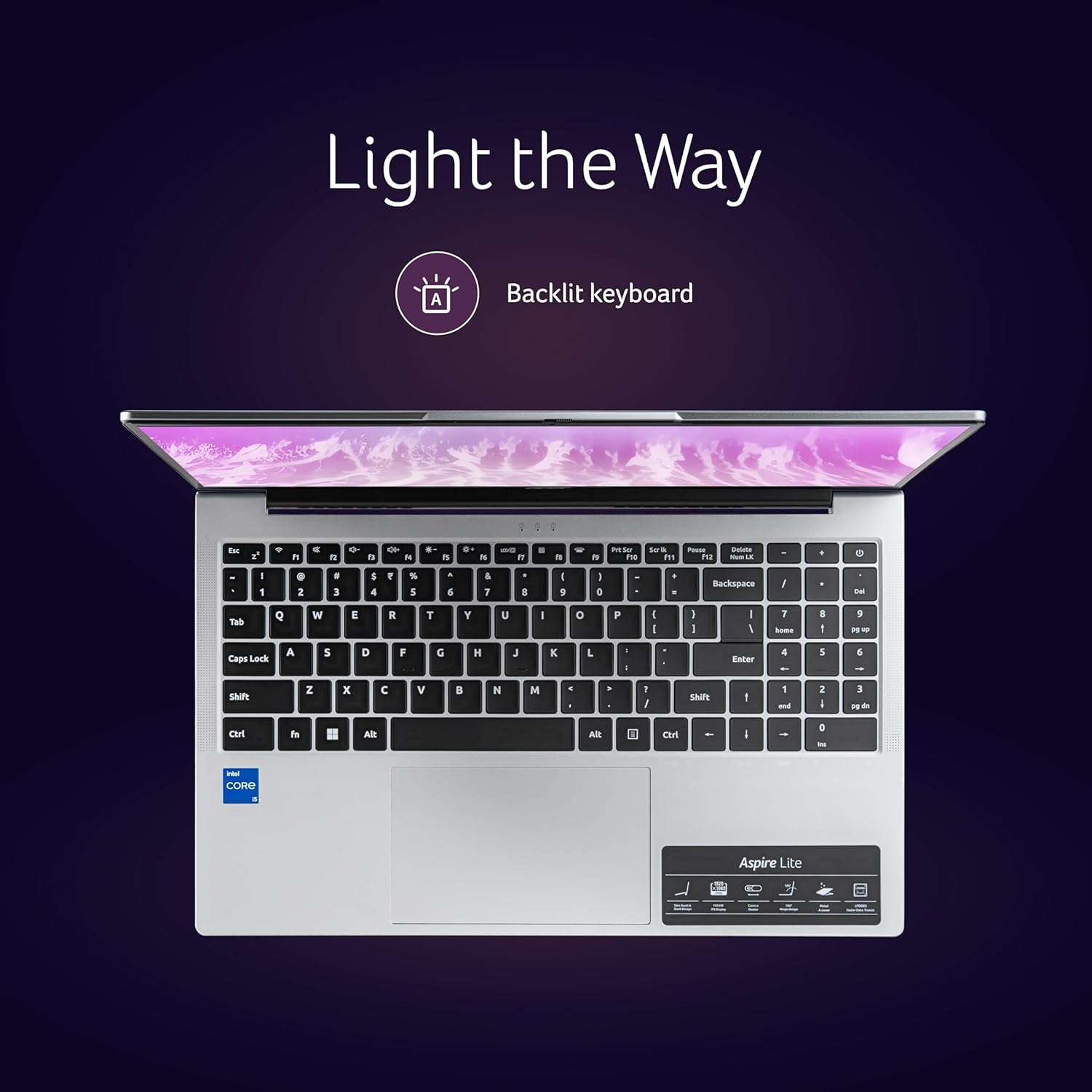 acer Aspire Lite, 12th gen, Intel Core i5-12450H Processor, 16 GB, 512GB, Full HD IPS, 15.6″/39.62 cm, Windows 11 Home, MSO, Pure Silver, 1.70 kg, AL15-52H, Backlit Keyboard