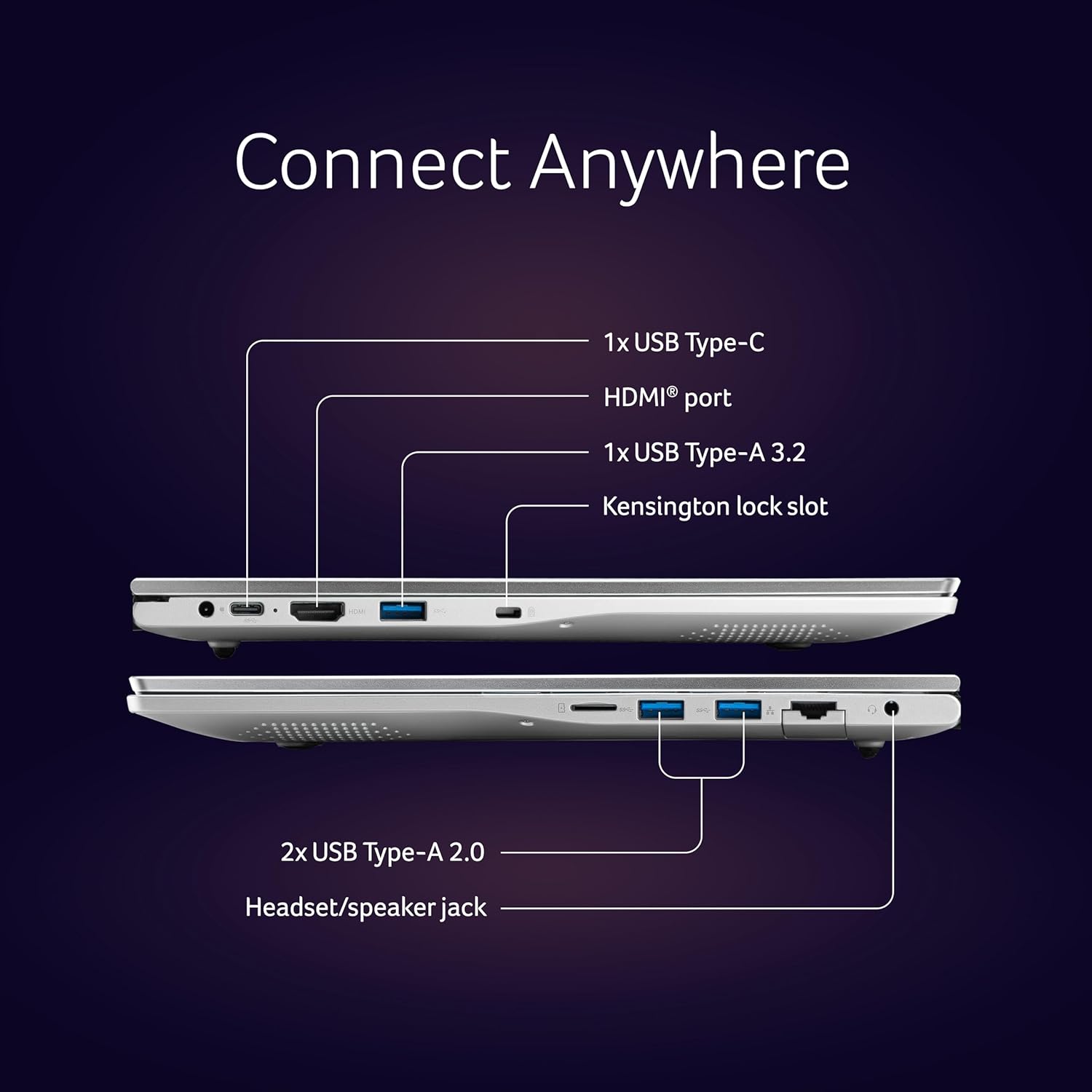 Get your connect on with a buffet of ports including USB ports, HDMI, a Kensington lock slot, and a headset/speaker jack.