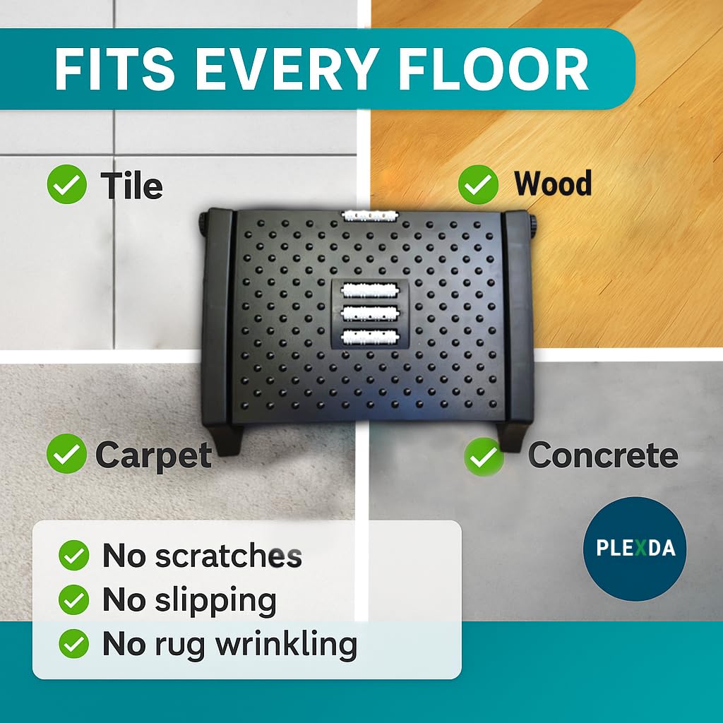 ERGONOMIC DESIGN: Evenly disperse pressure, Relax muscles, Raise your feet, Keep your Thighs and legs vertical and relieve sore feet. Plexda High quality footrest is engineered with the perfect firmness to provide you optimal support.