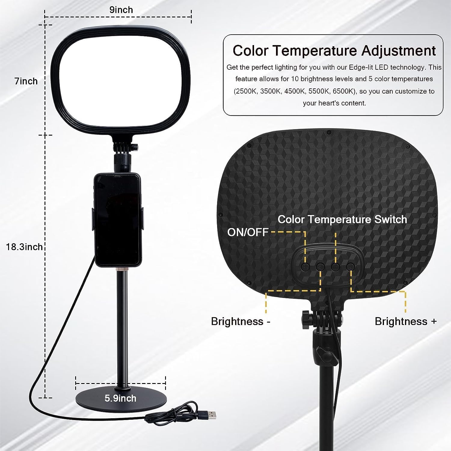 ✅ 【Flexible & Adjustable Height】Ring light for desk can adjust 11″ to 16″ (Just Metal Pole) and key light panel for the perfect angle. Ideal ring light for laptops, desktops, and monitors, ensuring your workspace or computer camera setup is well-lit.