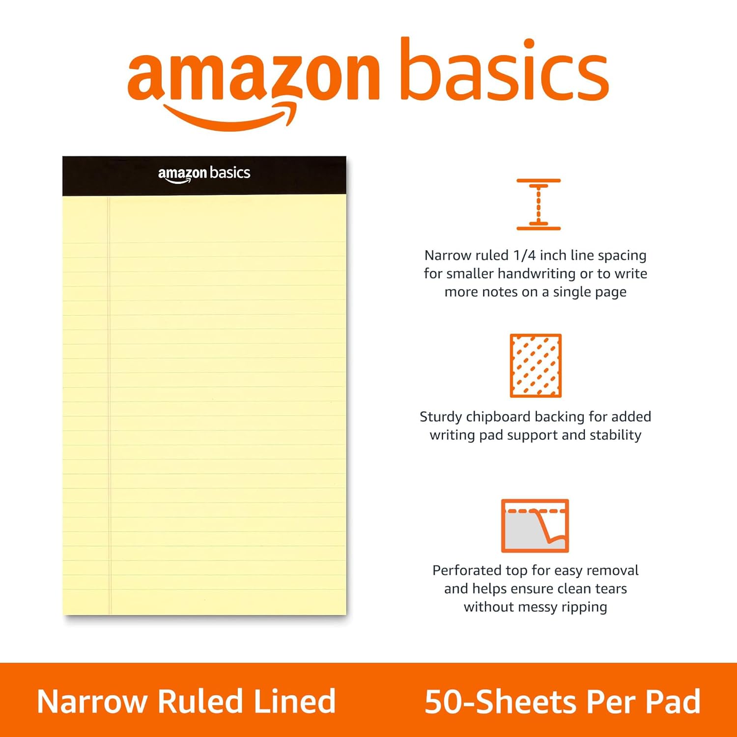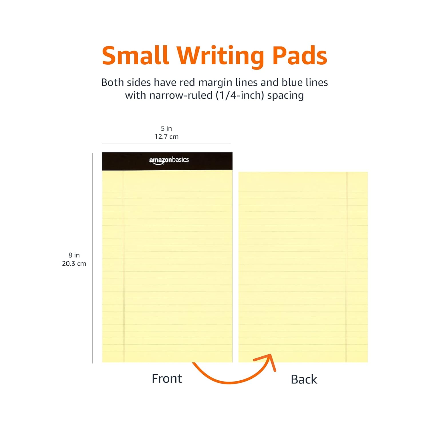 AmazonBasics Narrow Ruled 5 x 8-Inch Writing Pad – Canary (50 sheets per pad, 12 pack)