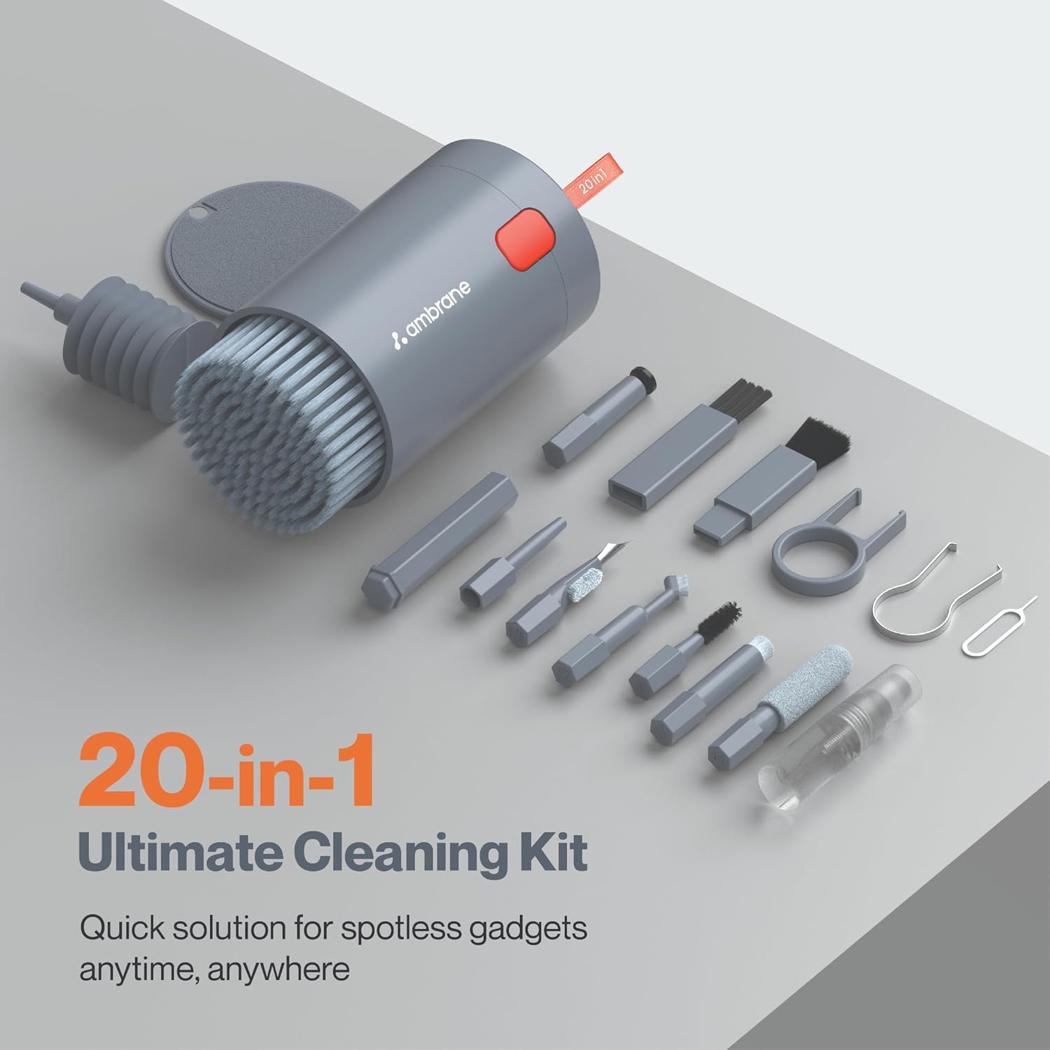 Be the first to review “Ambrane 20-in-1 Cleaning Kit for Smartphones, Tablet, PC Computer, Laptops, Keyboards, DSLR Camera Lens, Earphones, Airpods with Screen Dust Brush, Key Puller & Spray Bottle (ACK-01, Grey)”