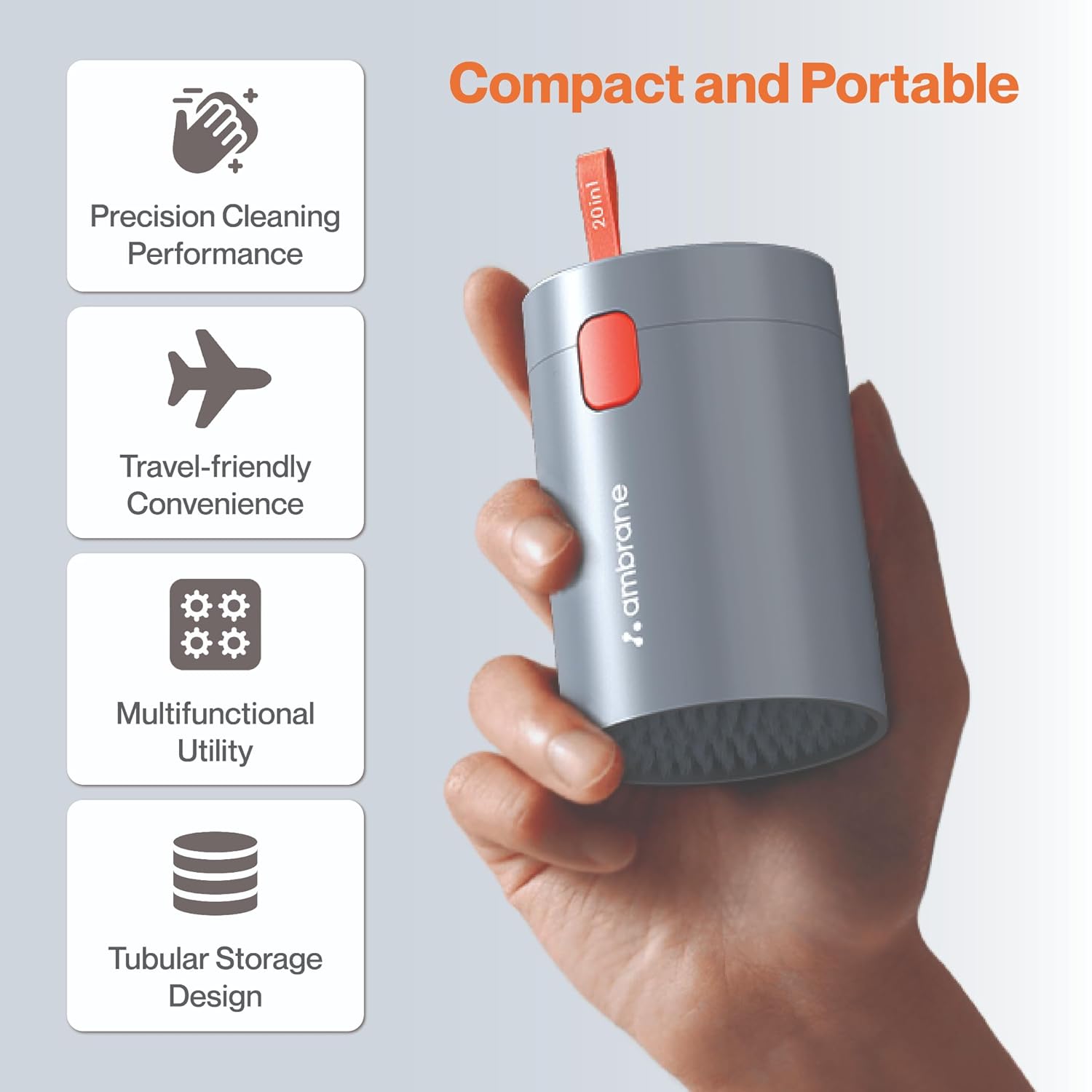 Designed for on-the-go convenience, ACK-01 is both compact and portable, making it the ideal cleaning companion for your gadgets wherever you are.