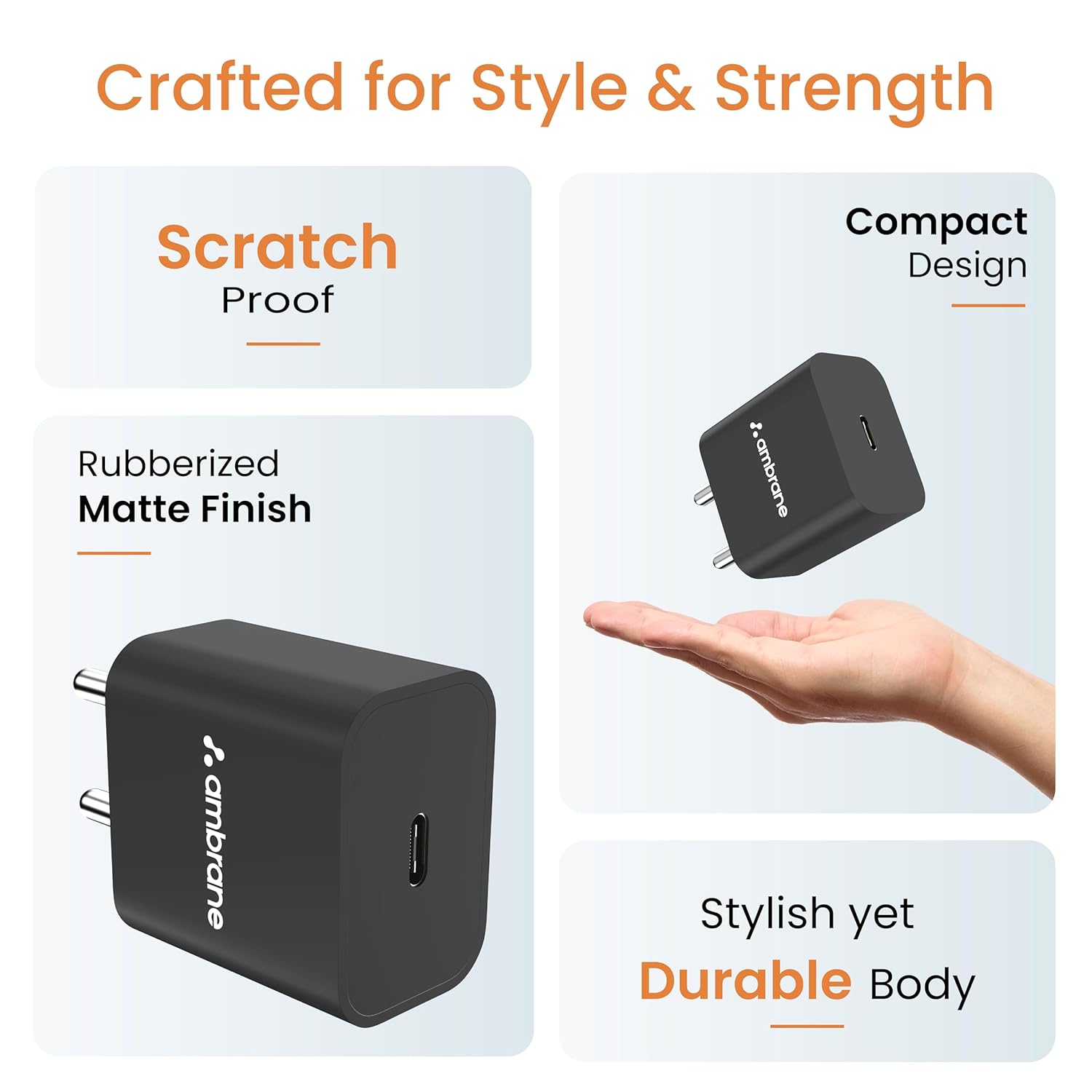 The durable body of the Ambrane RAAP M20 is made for rough and tough use, ensuring that it’s reliable and long-lasting. With its rugged design and sturdy construction, this charger is built to withstand the wear and tear of daily use, making it ideal for daily use.