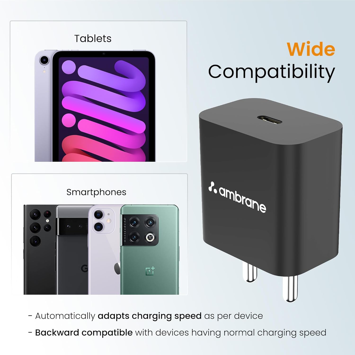 Ambrane’s BoostedSpeed technology enables the RAAP M20 wall charger to charge your devices up to 4 times faster than regular chargers, saving you time and ensuring that your devices are always ready to go when you are. This makes it an ideal choice for anyone who is constantly on the move and needs a charger that can keep up with their busy lifestyle.