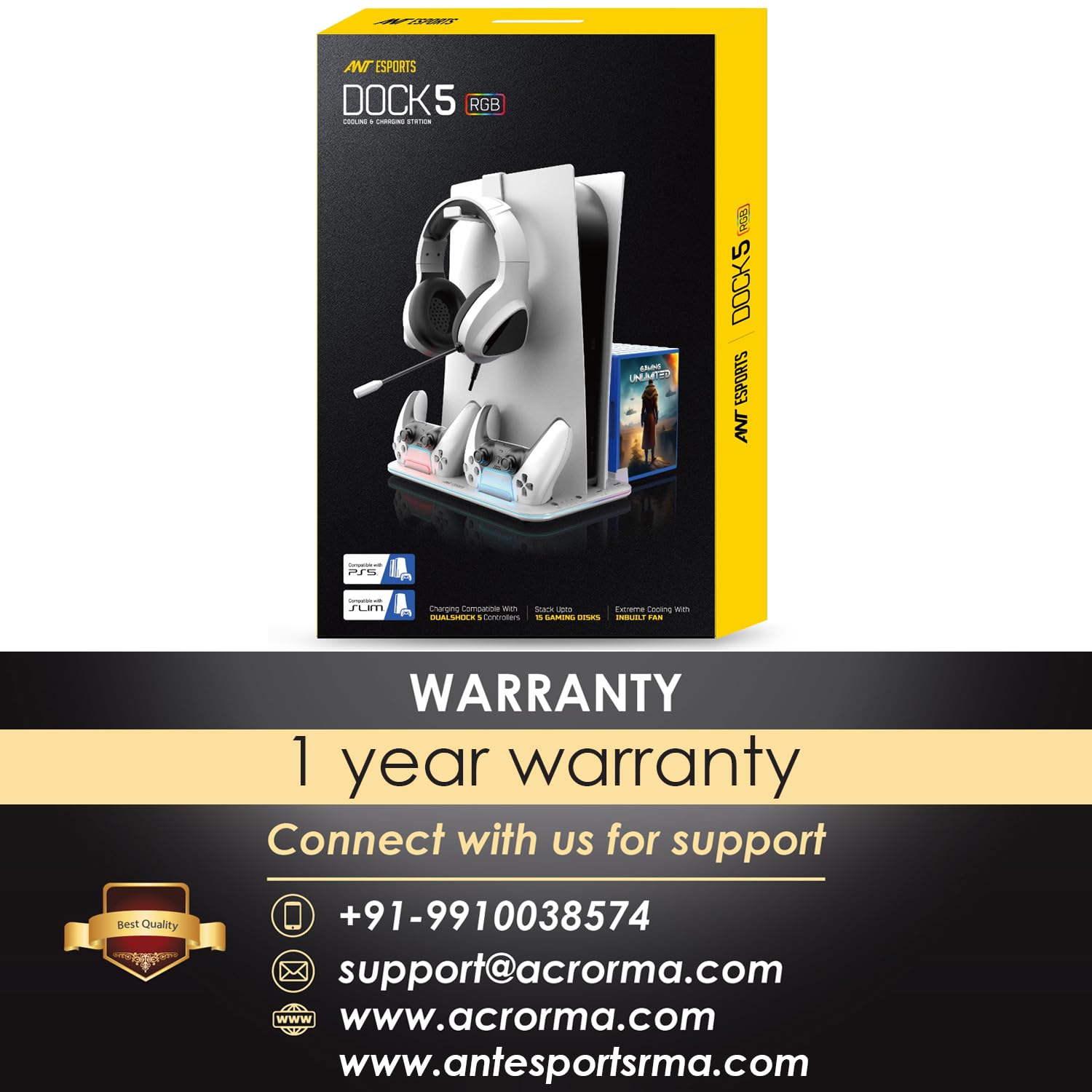 Be the first to review “Ant Esports Dock5 RGB with Cooling Fan and Dual Controller Charger Station, PS5 Console Disc & Digital Edition, PS5 Cooling Station Accessories with RGB Light/Headset Holder/6 Game Slots/Screw (White)”