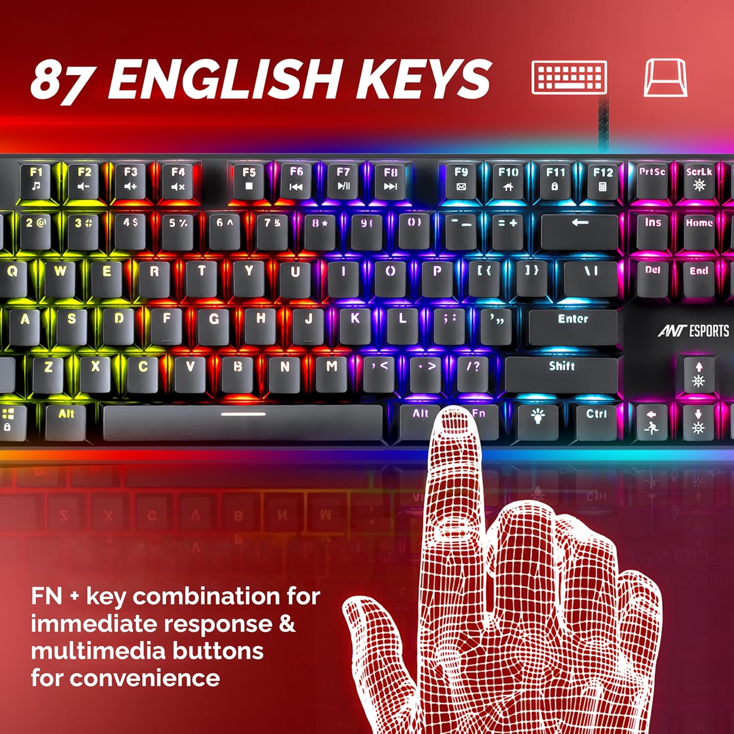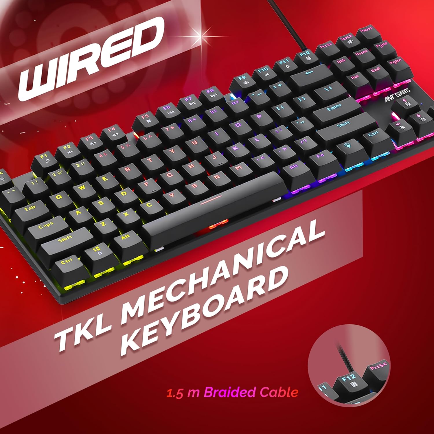 Ant Esports Scorpion MK20 Wired 75% Mechanical Gaming Keyboard, 87 Keys Compact TKL Wired Linear Red Switches Detachable USB RGB Backlight Keyboard