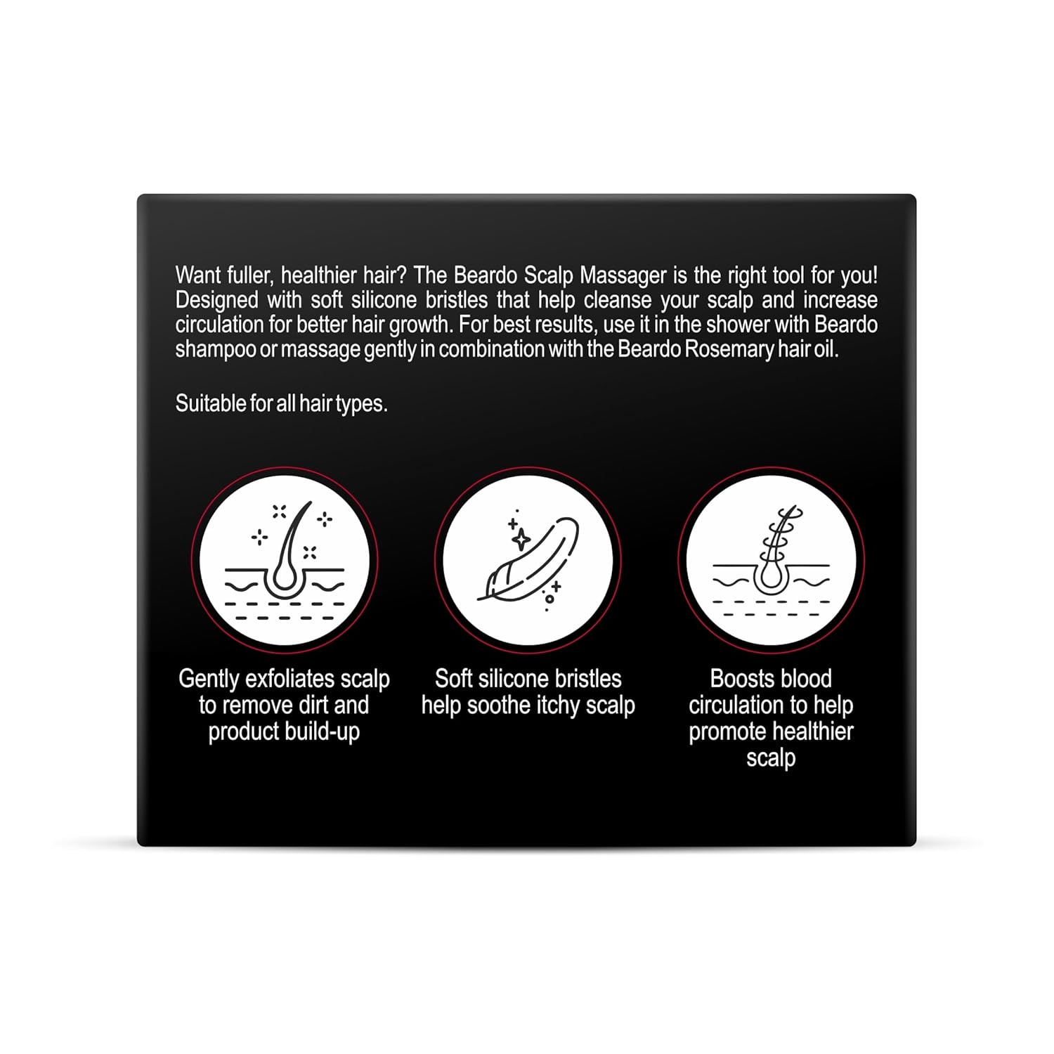 IDEAL FOR ALL HAIR TYPES -Curly or straight, fine or thick, long or short, the Beardo Scalp Massages effortlessly tackles it all. Stimulates, massages and exfoliates the soft silicone bristles work their magic without any scalp discomfort.