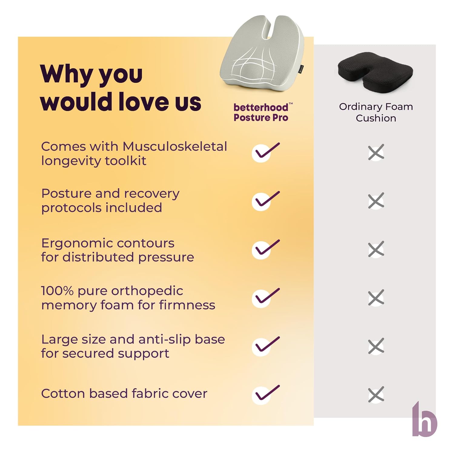 Be the first to review “betterhood PosturePro Premium Coccyx Seat Cushion for Tailbone Pain Relief | Memory Foam Sitting Pillow, Cotton Cover, Large Size | Office Chair Cushion Pad | Orthopedic Ergonomic Chair Pillow (Grey)”