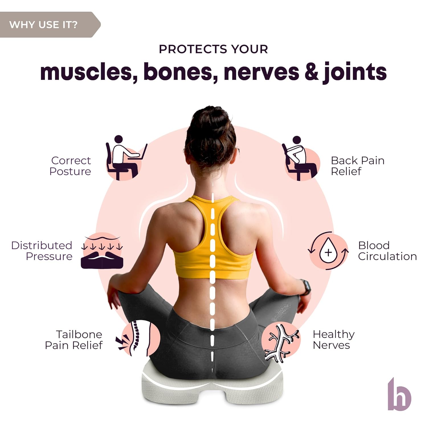 Orthopedic Design with U-Cut: This coccyx cushion for tailbone pain protects the tailbone, keeps the spine aligned; this offers tailbone pain relief and lower back pain relief