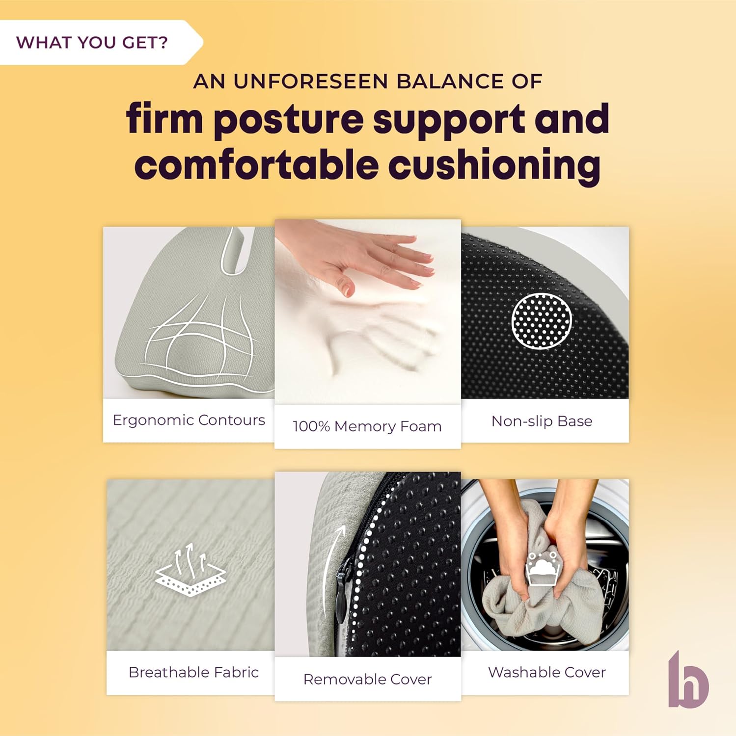 Extra-firm, High-Density, and 100% Pure Memory Foam: This chair pillow for sitting maintains its shape, supports body weight; provides the perfect balance of firm support and comfortable cushioning