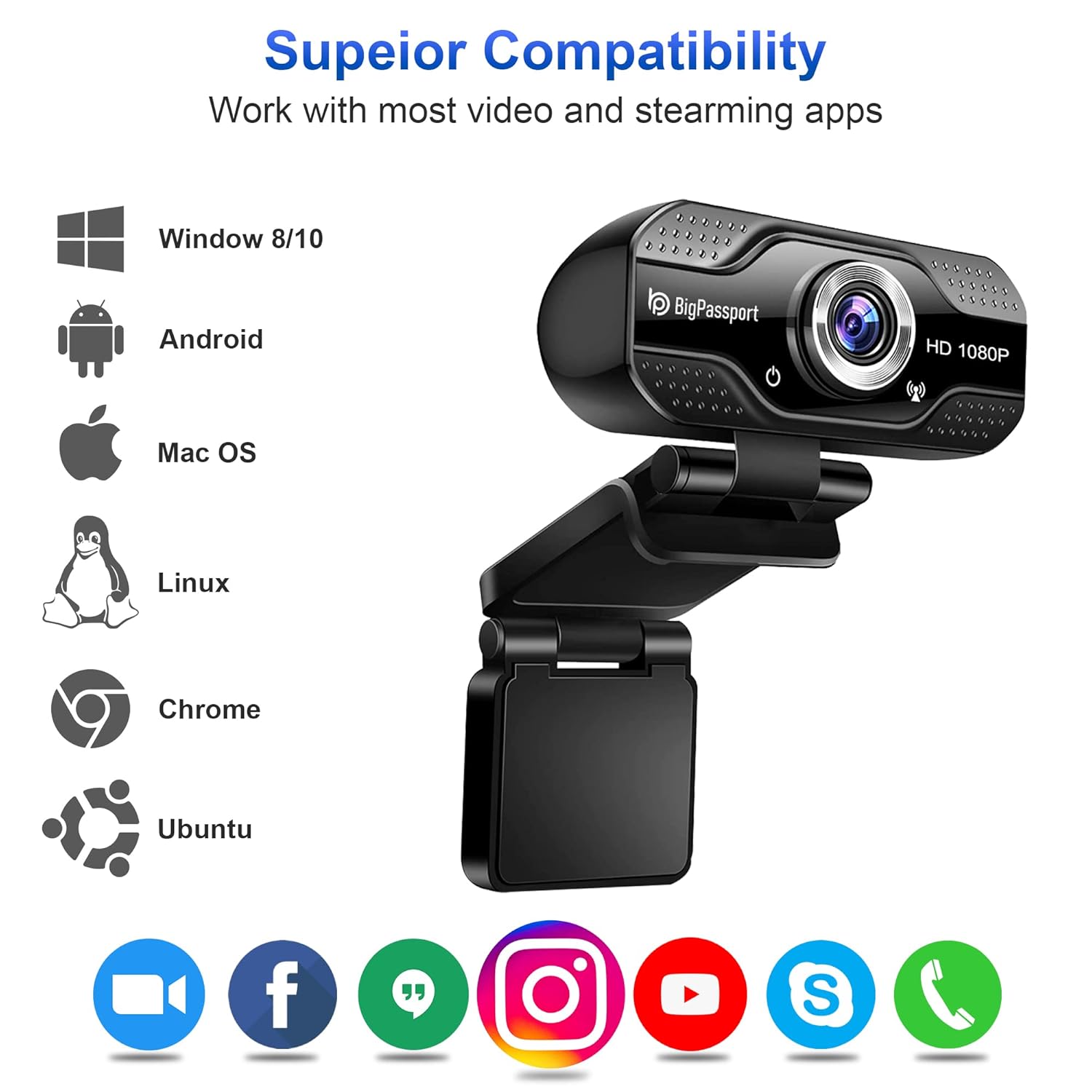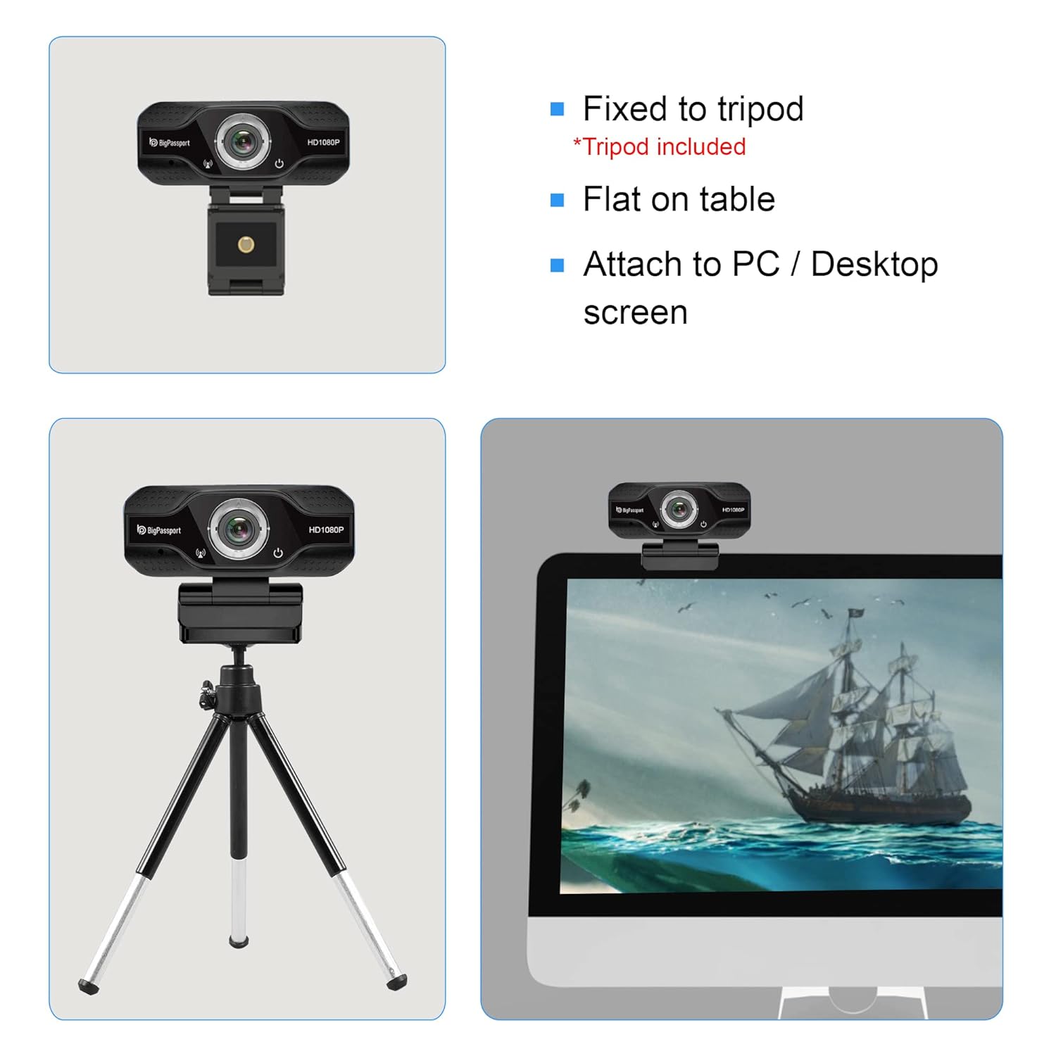 BigPassport 1080P Full HD Webcam with Mic | USB Camera for Laptop, PC, Video Calling, Online Classes, Zoom, Skype – Night Vision 3P Lens, 30 FPS Streaming – Plug & Play