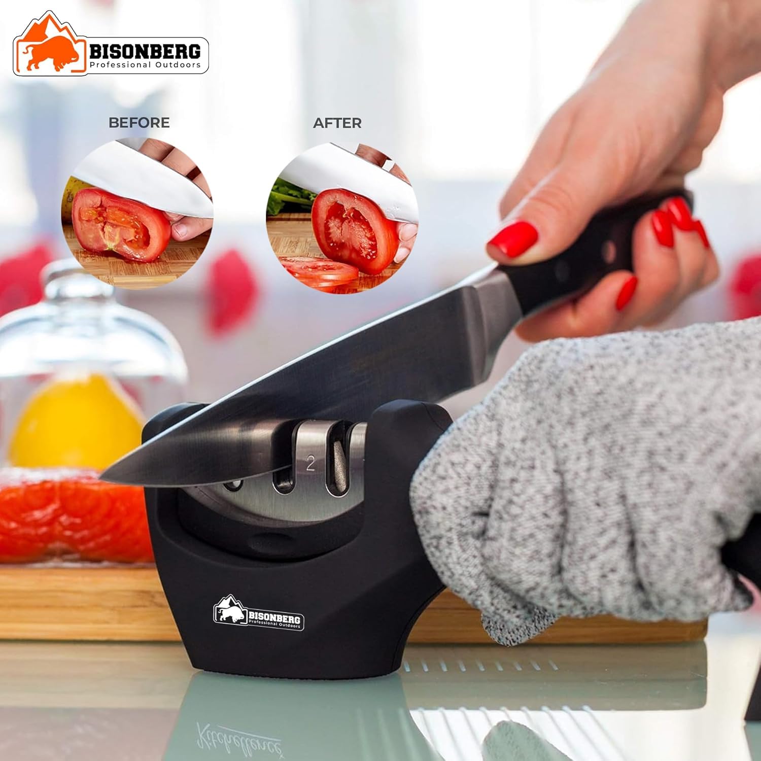 Be the first to review “BISONBERG Kitchen Knife/Utility Knives for Kitchen Home & Outdoor Cooking Use Ideal for Portable, Travel – Black (Manual) with Knife Sharpner”