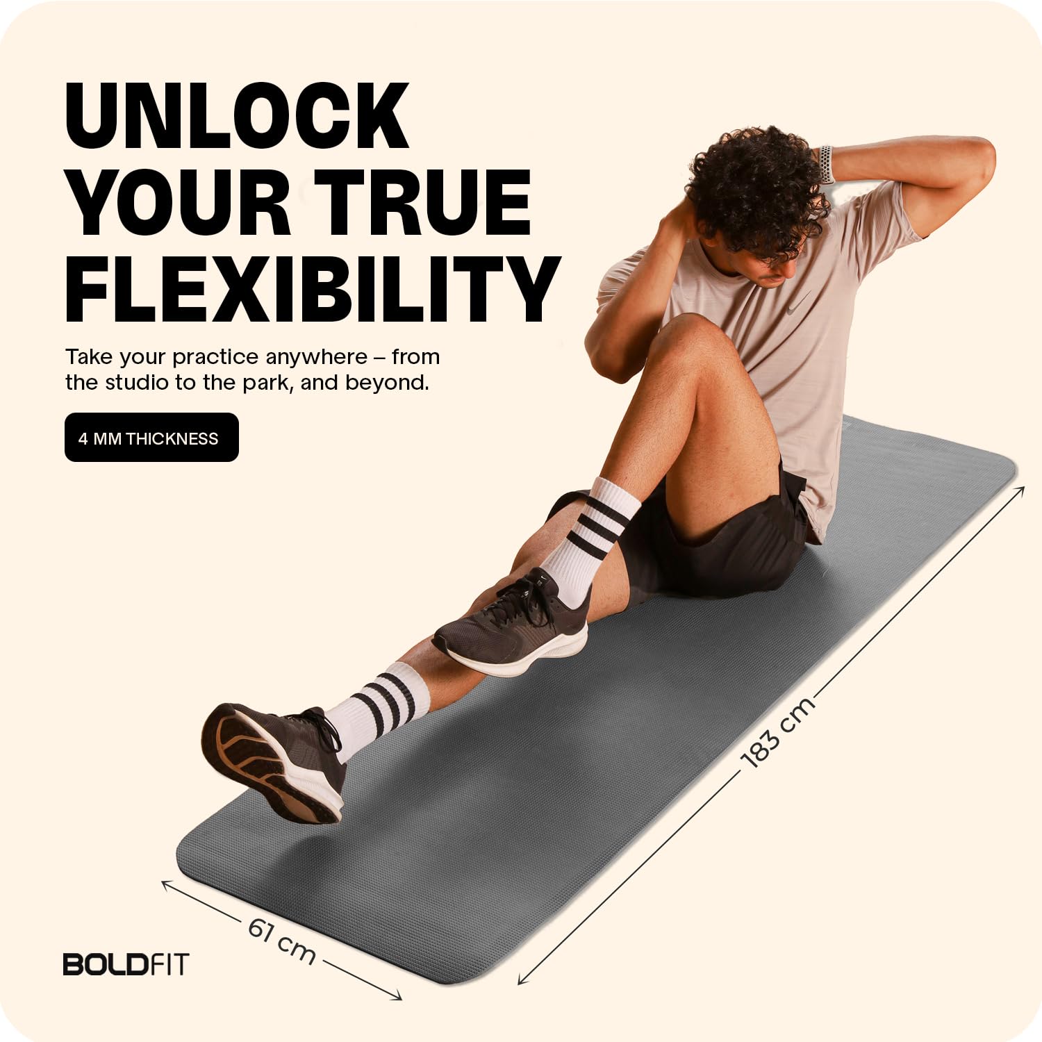 Yoga Mat with Strap – A yoga mat strip is included with our Boldfit EVA all-purpose premium workout mat , Easy strapping and light weight feature are added to this mat for easy transport and storage. Carry around your yoga mat & flaunt it with ease!