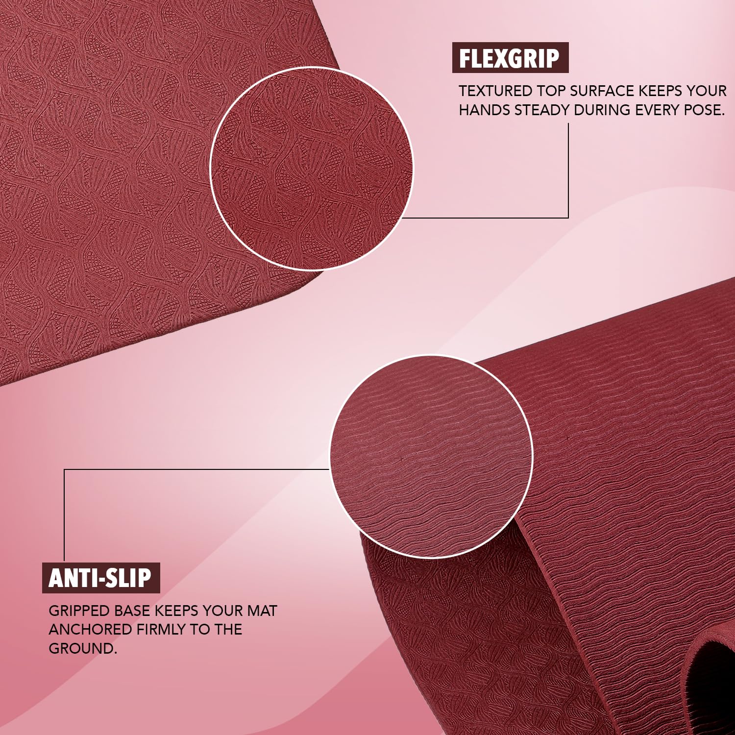 Clients reward the yoga mat's grip, noting its non-slip floor and textured design that retains palms and toes steady throughout poses.
