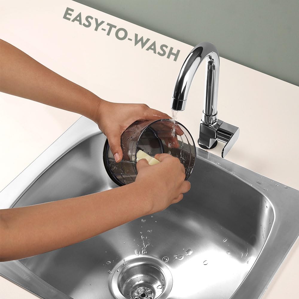Convenient ‘Chop-Serve-Store’ Bowl: Our mini chopper for kitchen use comes equipped with a 600 ml plastic bowl and lid, making it the ideal vegetable cutter for kitchen enthusiasts who appreciate easy storage.