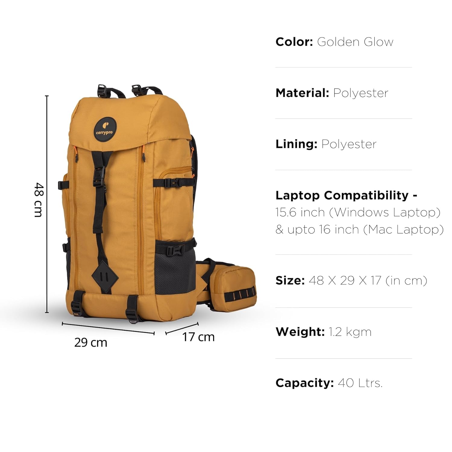 Product Dimensions 46 x 28 x 17 cm Item Weight 1 kg 200 g Material Polyester Raincover Included Capacity 40 ltrs. Laptop Compatibilty 15.6 inches