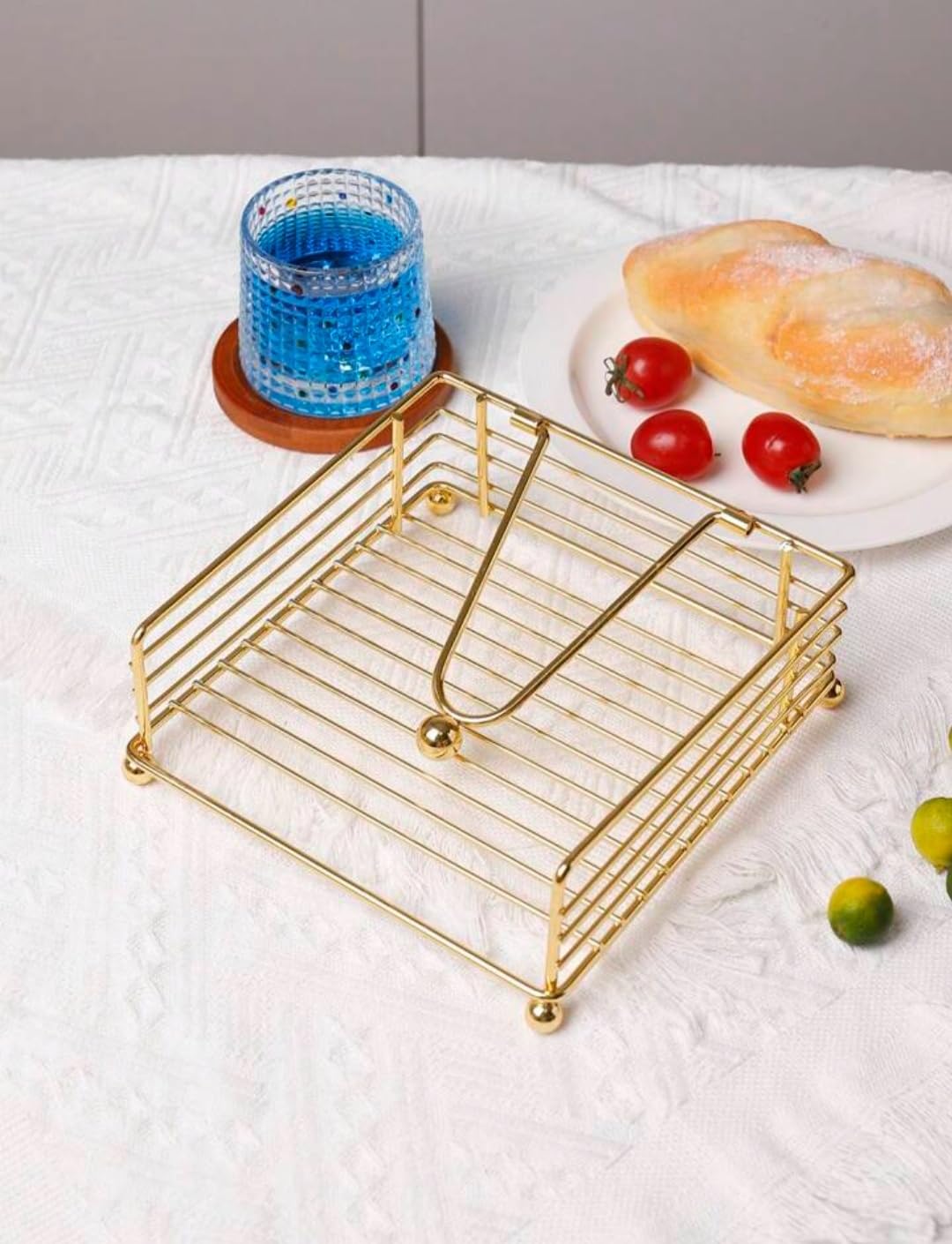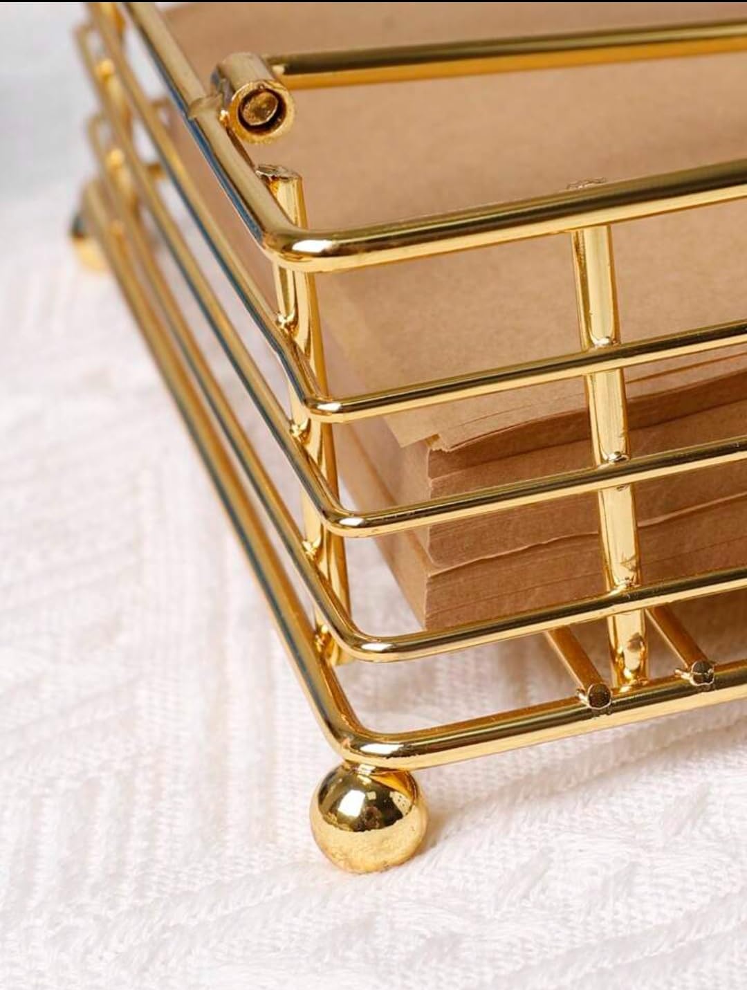 PREMIUM DESIGN: Square-shaped napkin holder crafted with elegant gold finish metal and decorative ball feet for a royal appearance