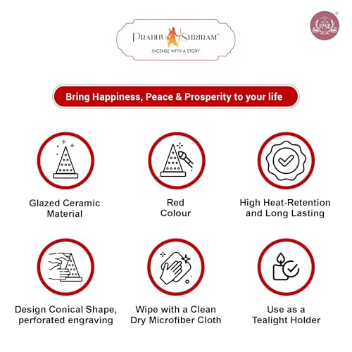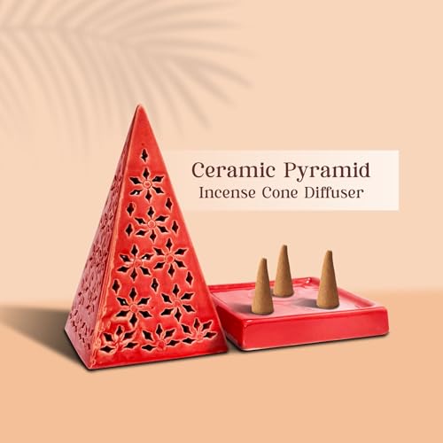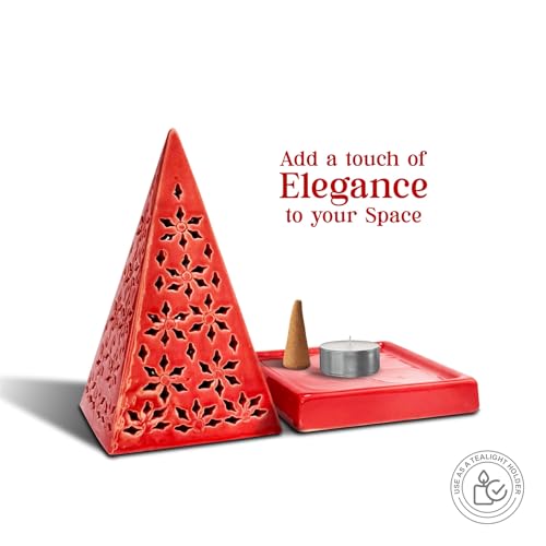 Specification: Ceramic Incense Cone Holder Pyramid Shape | Glazed Red Burner for Aromatherapy, Meditation, Yoga, Home & Temple Decor | Dhoop Cone & Fragrance Diffuser