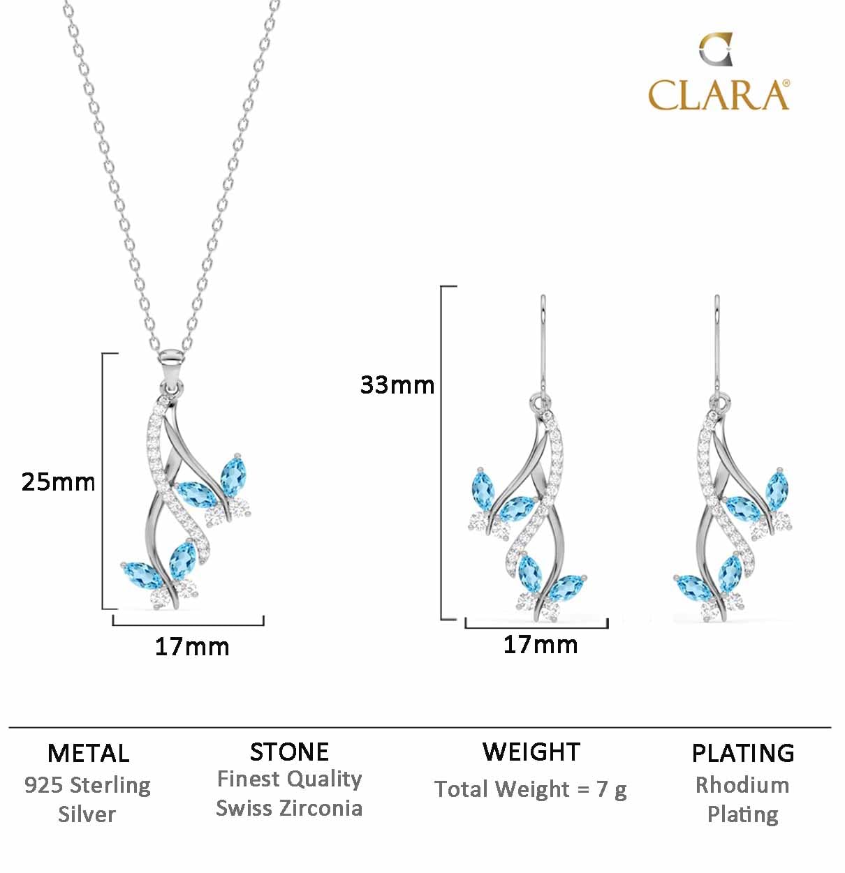 Made in Pure 92.5 % Real Sterling Silver. 925 stamp will be on every product. Finest Quality Swiss Zirconia – As brilliant As Diamond. Sparkle of our specially cut zirconia is very much equivalent to Real Diamond and even professionals can not differentiate with naked eyes whether it is Zirconia or Diamond. 2 Microns Thick Nickel free Rhodium/Gold/Rose Gold Plating is done to give long lasting shine. Product comes in a very elegant gift box with CLARA Authenticity Card. 18″ Long Sterling Silver Chain is provided FREE with this Pendant Earring set for Women and Girls.
