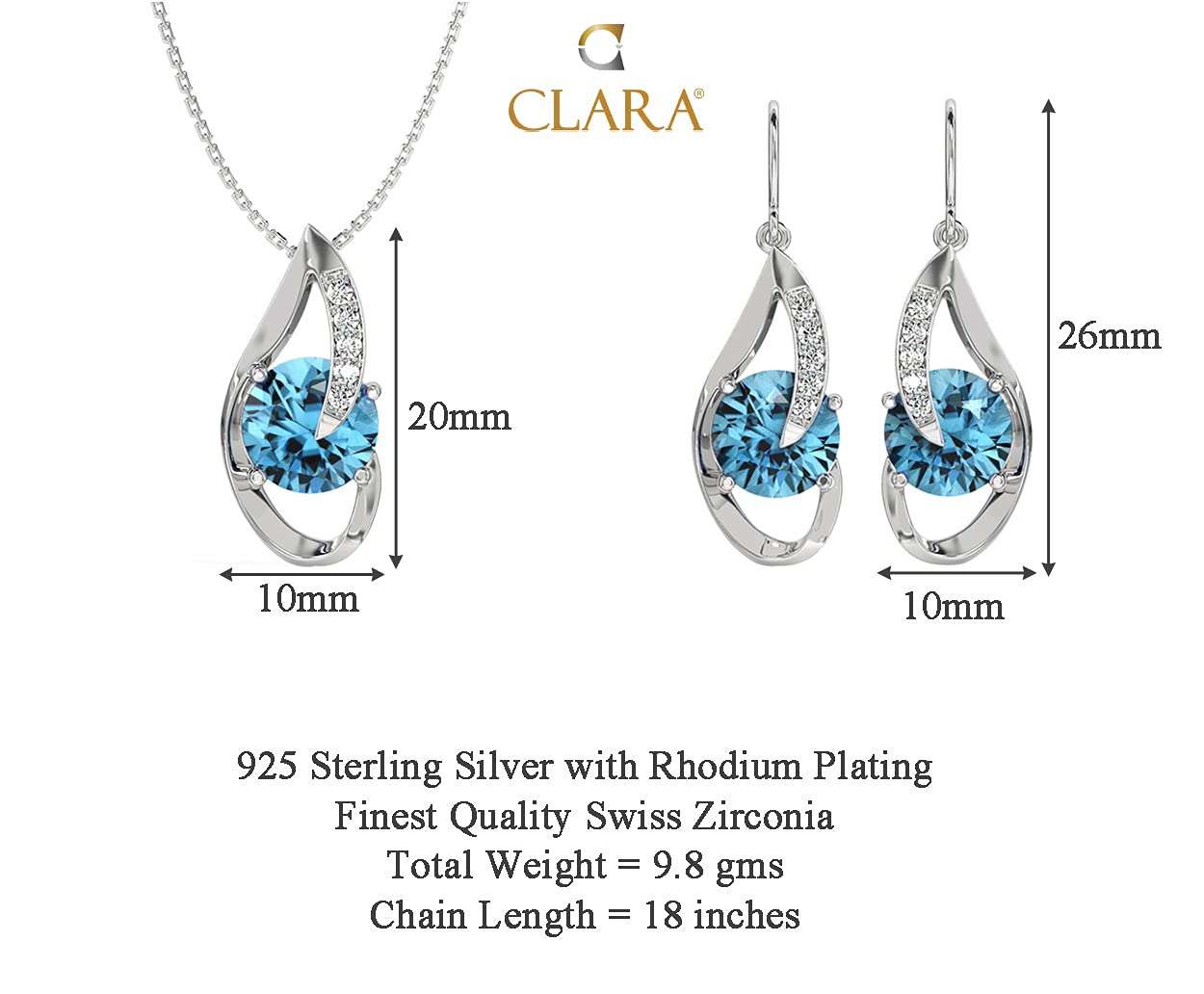 Made in Pure 92.5 % Real Sterling Silver. 925 hallmark stamp will be on every product. Finest Quality Swiss Zirconia – As brilliant As Diamond. Sparkle of our specially cut zirconia is very much equivalent to Real Diamond and even professionals can not differentiate with naked eyes whether it is Zirconia or Diamond. 2 Microns Thick Nickel free Rhodium Plating is done to give long lasting shine. Product comes in a very elegant gift box with CLARA Authenticity Card. 18″ Long Sterling Silver Chain is provided FREE with this Pendant Earring set for Women and Girls. Earrings comes with Screw Back for comfortable wear and real looks. Pendant Length = 20 mm, Width = 10 mm, Chain Length = 18 inches. Earrings Length = 26 mm, Width = 10 mm, Total Set Weight = 9.8 gms.