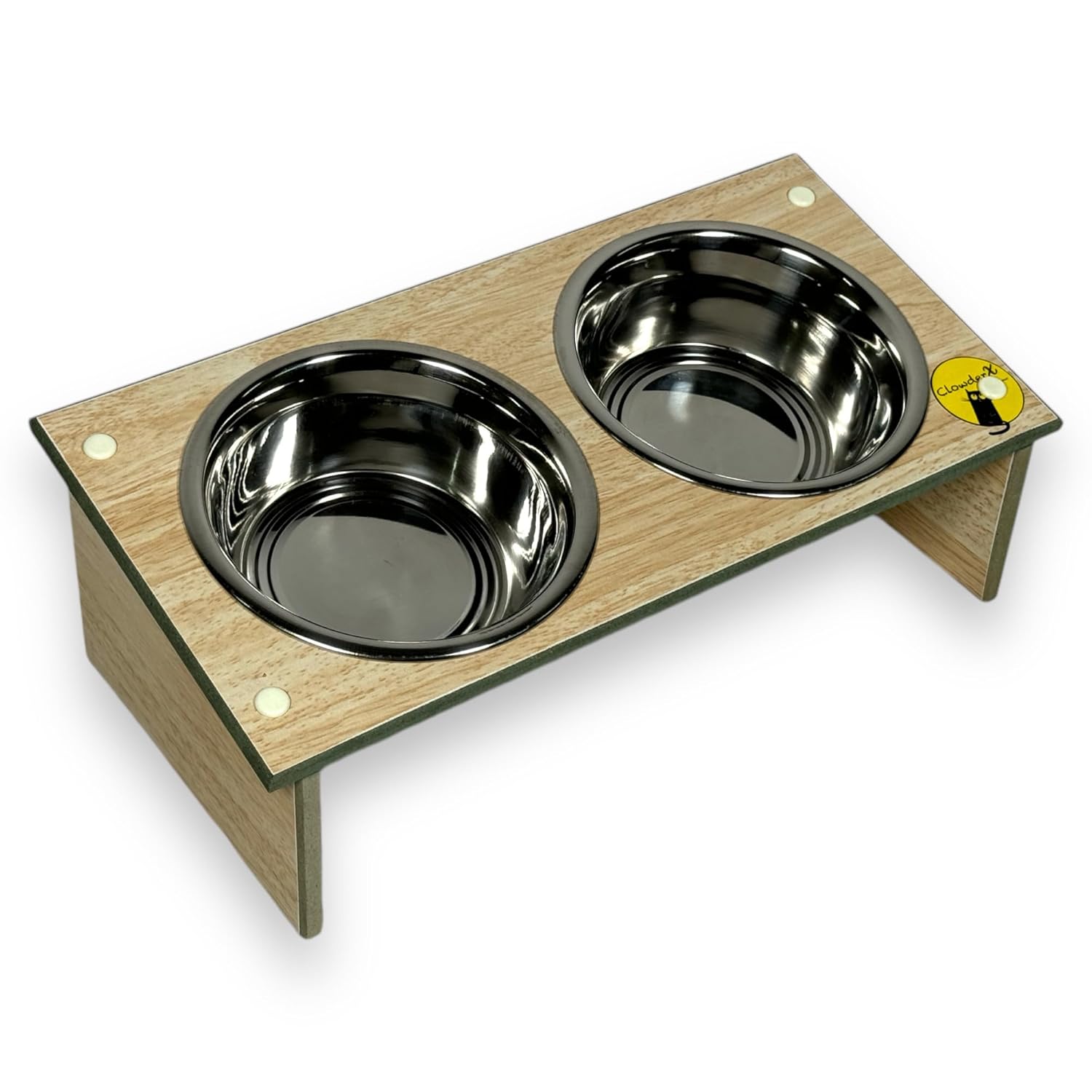 Elevate your pet’s dining experience with this stylish and ergonomic feeding bowl stand. Crafted from high-density moisture-resistant (HDHMR) board, it features two stainless steel bowls set at a 10-degree incline, promoting better posture and reducing strain on your furry friend’s neck and back during mealtimes. The elevated design keeps the bowls off the floor, ensuring a cleaner and more hygienic feeding area. With its sleek, wooden finish, this feeding station seamlessly blends into any home decor. Suitable for cats and small dogs, it offers a convenient and comfortable way to serve your beloved pets. Prioritise your pet’s comfort and well-being with this practical and visually appealing feeding solution.