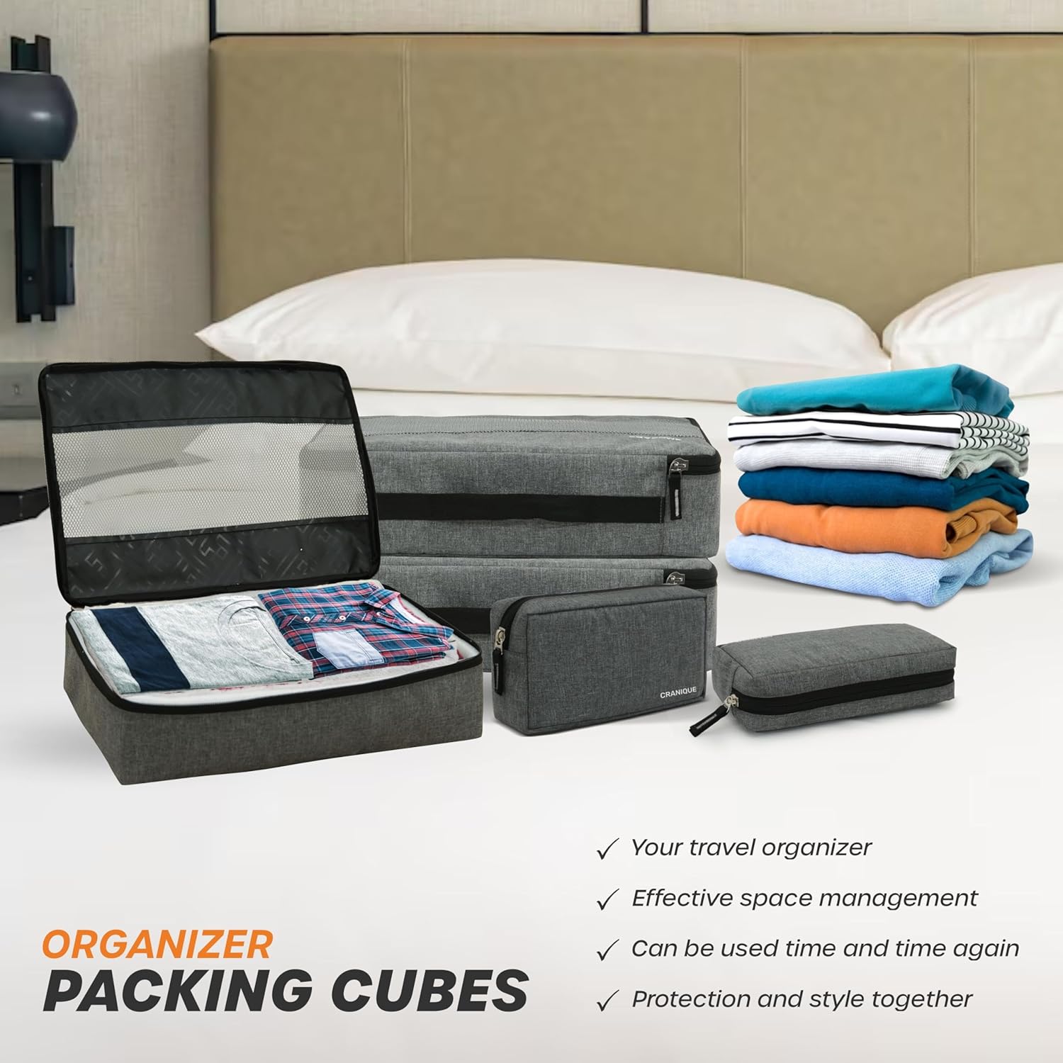 Space Optimization: Maximize your packing space by fitting more clothes, toiletries, and essentials into your luggage while maintaining neat organization.