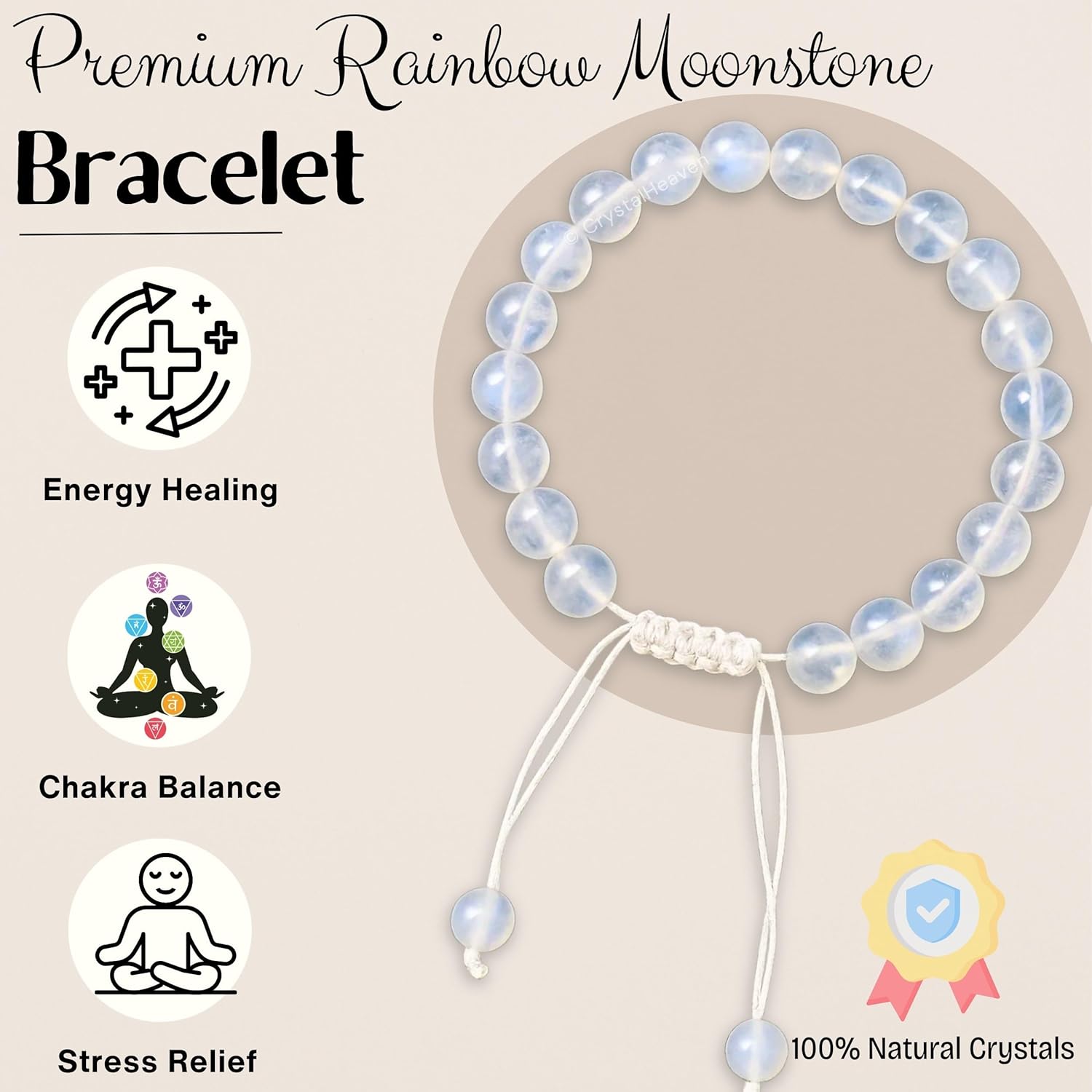 Rainbow Moonstone Crystal with Adjustable Robe Macrame bracelet