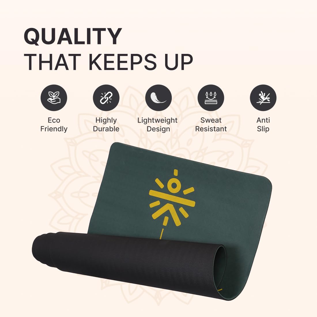 Non-Slip Double-Sided Surface: Designed with a textured anti-slip surface, this mat offers superior grip and traction on both sides. Stay stable and secure in every pose — from downward dog to warrior — even during hot yoga or sweaty workouts.