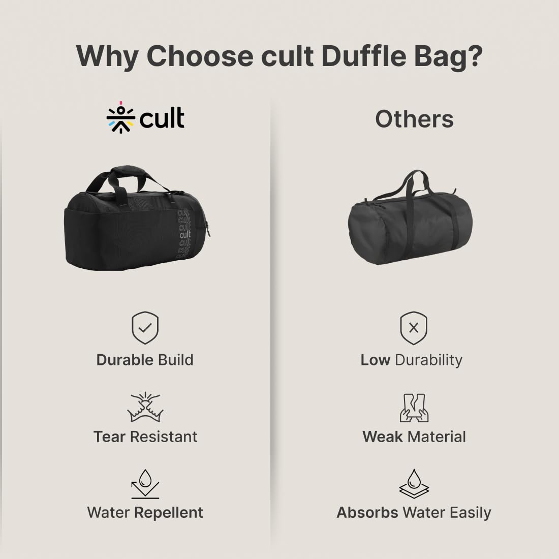Be the first to review “Cultsport 35L Gym/Duffle Bag for Men & Women | Water-Resistant Sports Travel Bag with Shoe Compartment, Adjustable Shoulder Strap, Side Pocket & Spacious Main Storage – Black”