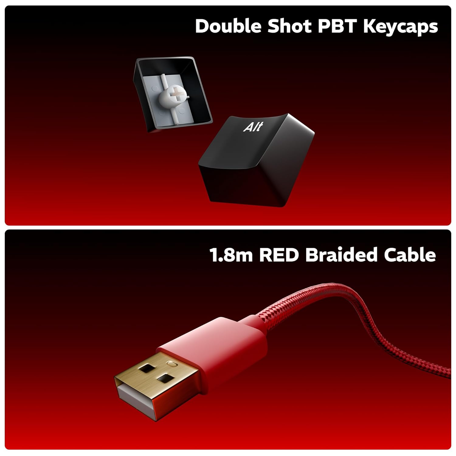 PBT KEYCAPS: Built for durability, the double-shot PBT keycaps resist wear and legend fading that keeps the keyboard looking sharp.