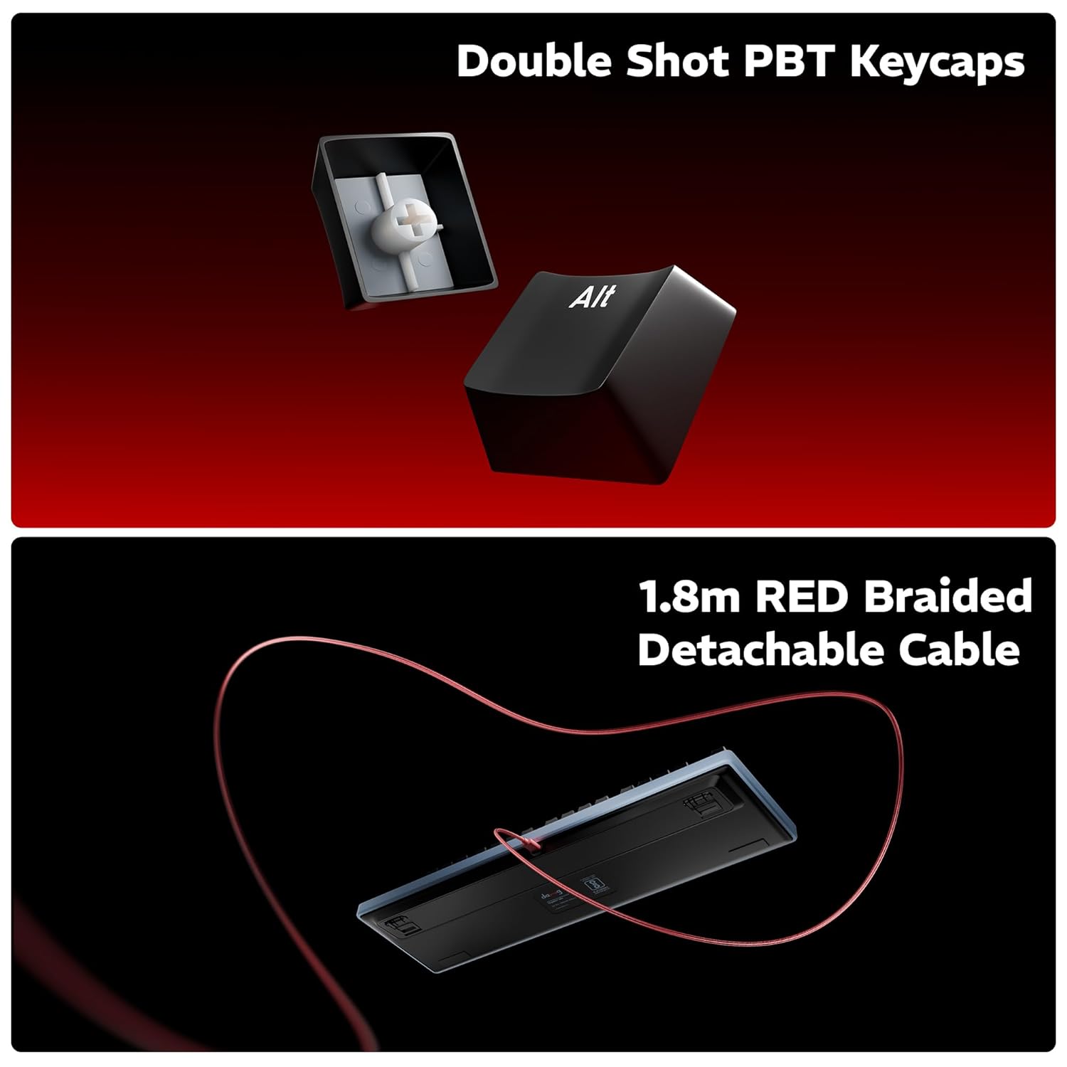 PBT KEYCAPS: Built for durability, the double-shot PBT keycaps resist wear and legend fading that keeps the keyboard looking sharp.