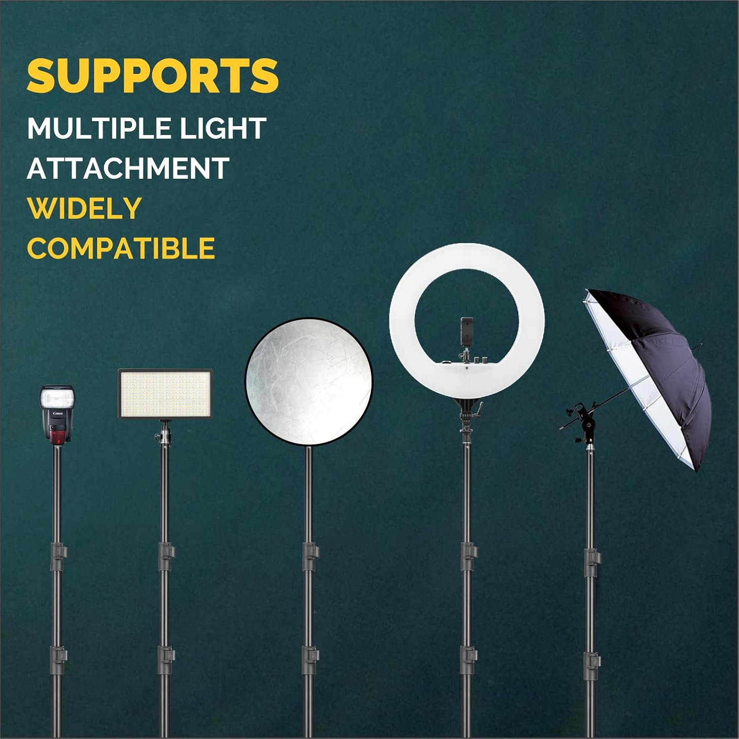 𝗦𝘁𝗮𝗯𝗹𝗲 𝗮𝗻𝗱 𝗔𝗱𝗷𝘂𝘀𝘁𝗮𝗯𝗹𝗲: The ring light comes with shock absorption springs, flip lock, and 3 adjustable sections in the stand, offering stability and flexibility in positioning.
