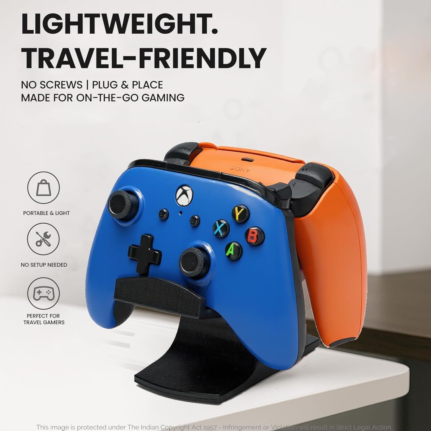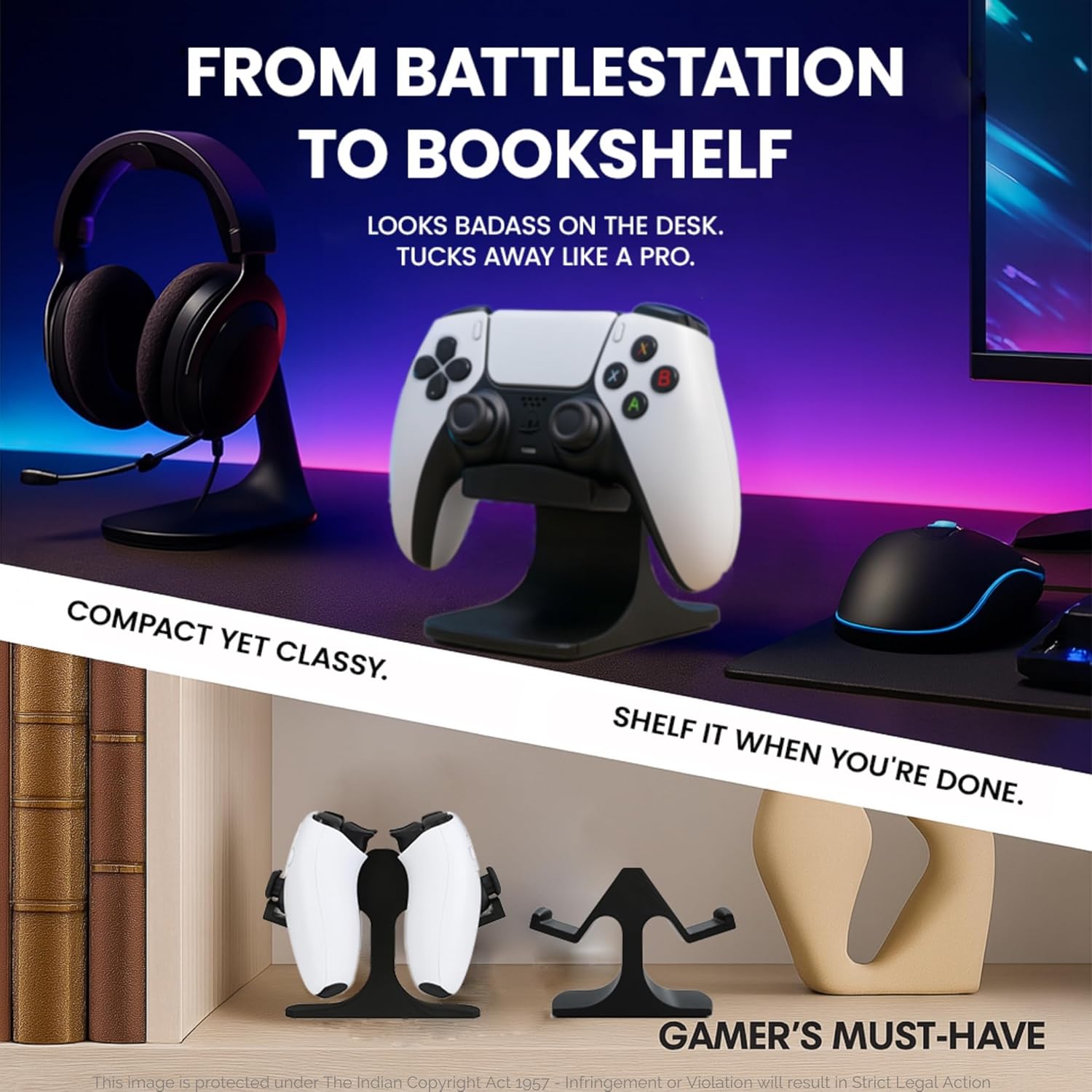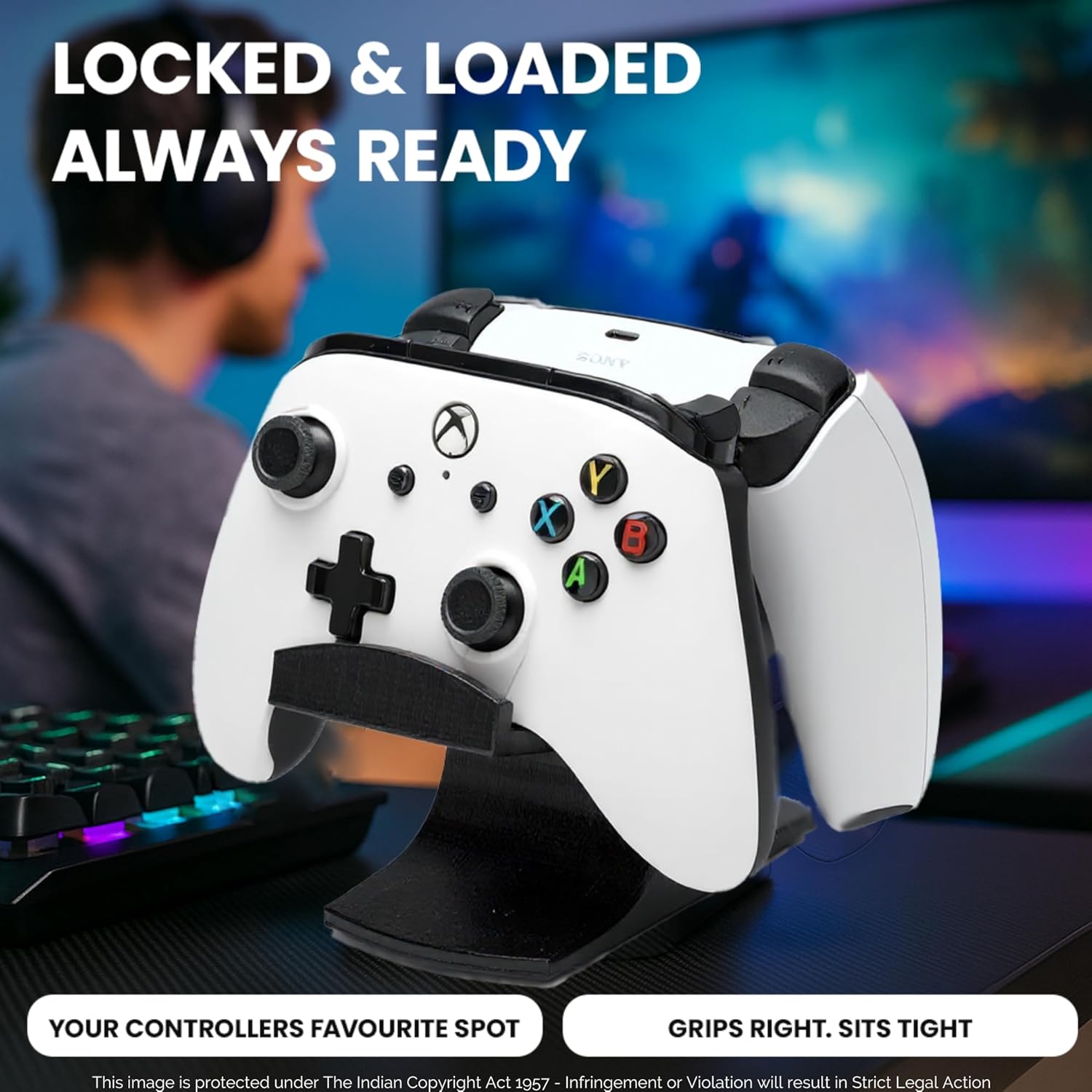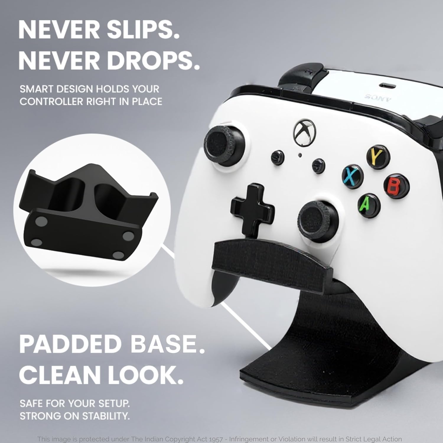 UNIVERSAL DUAL CONTROLLER STAND – Designed as a ps5 controller stand, xbox controller stand and controller stand in one, our space‑saving cradle keeps two gamepads upright, charged and scratch‑free while freeing up desk real estate.