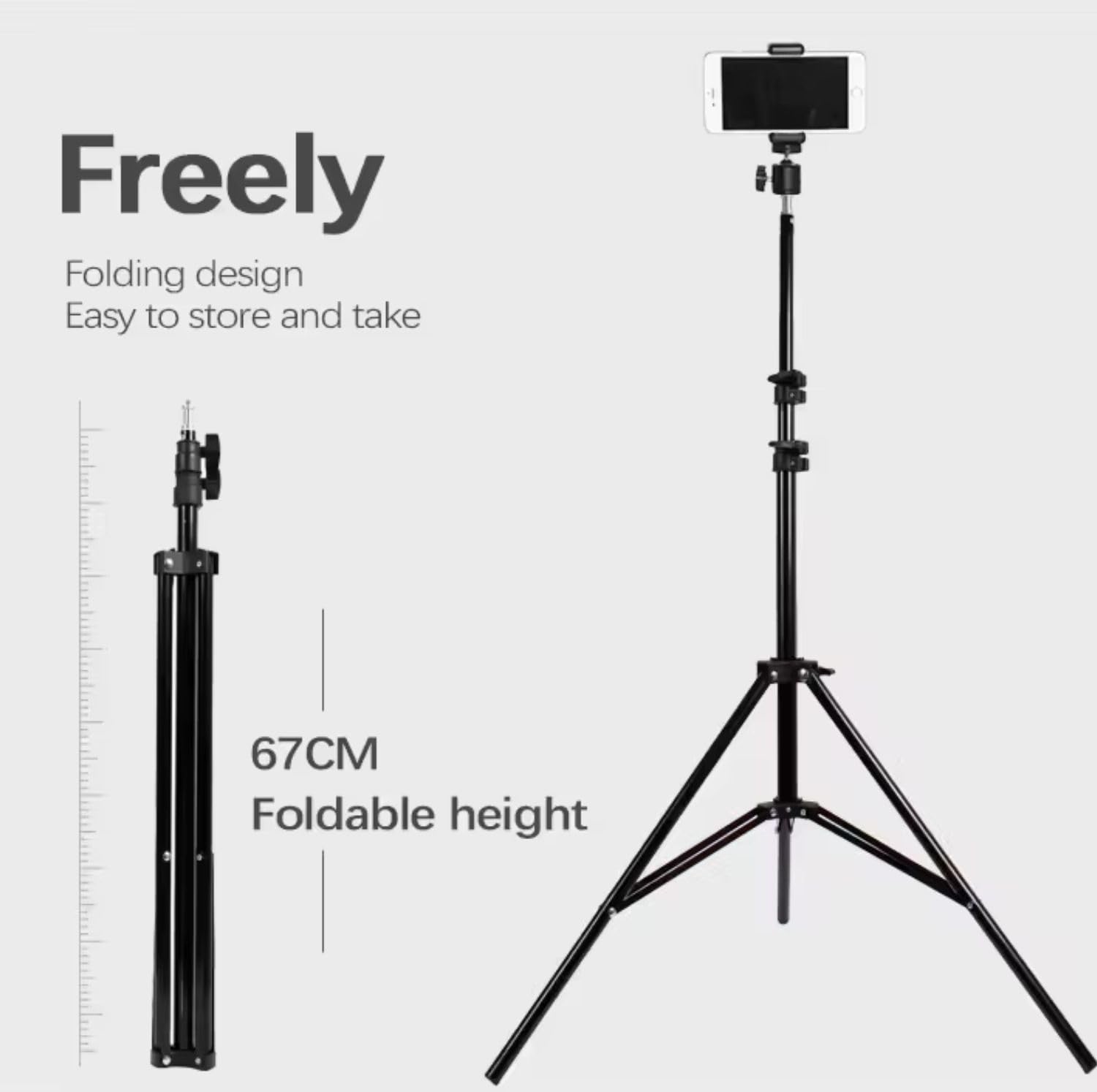 Lightweight & Portable for Easy Carrying – With its compact and foldable design, this tripod is easy to transport and store, making it perfect for outdoor shoots, travel and on-the-go vlogging sessions.