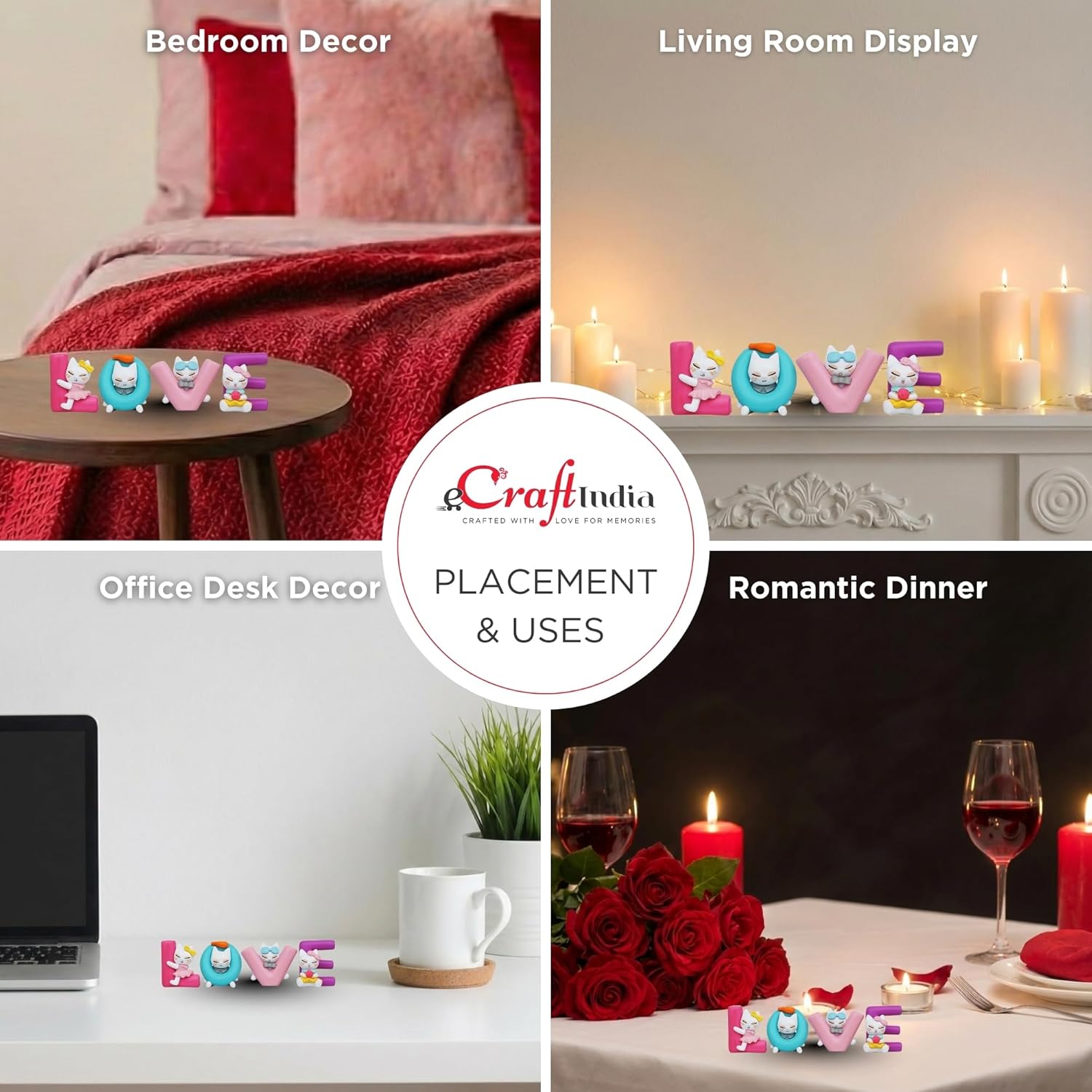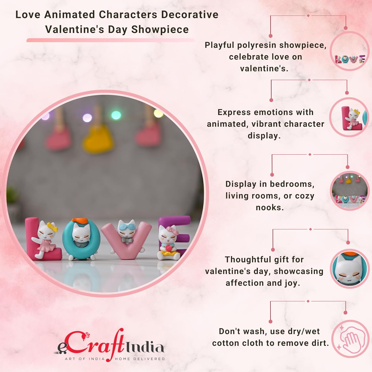 “This adorable “Love” Animated Characters Valentine Multicolor PolyPlastic Showpiece from eCraftIndia is a perfect addition to your home decor. It adds a touch of romance and warmth to your living space, making it an ideal valentine gift hamper that your partner will cherish.