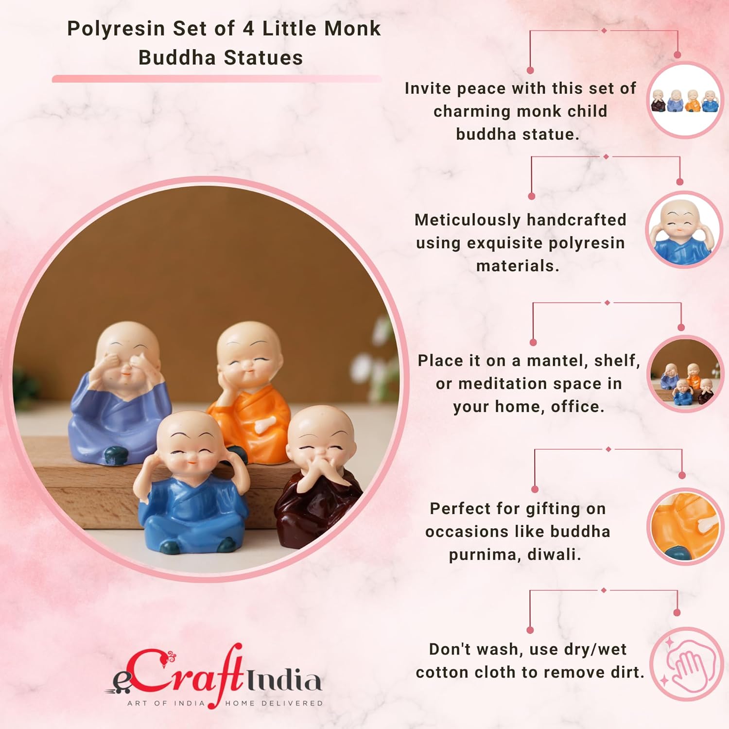 Be the first to review “eCraftIndia Resin Set of 4 Little Monk Buddha Statue Think No Evil Speak No Evil Hear No Evil See No Evil Showpiece for Home Decor Living Room Office| Diwali Housewarming Buddha Purnima Birthday Gifts”