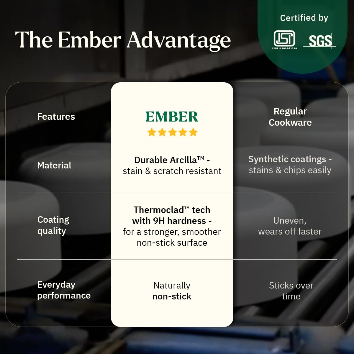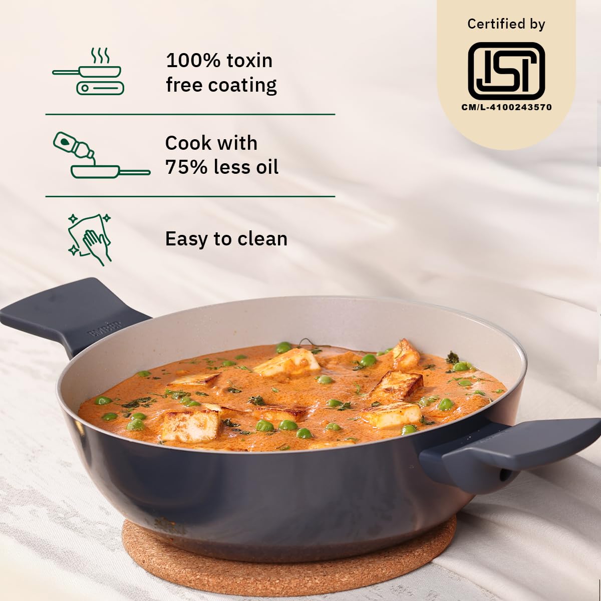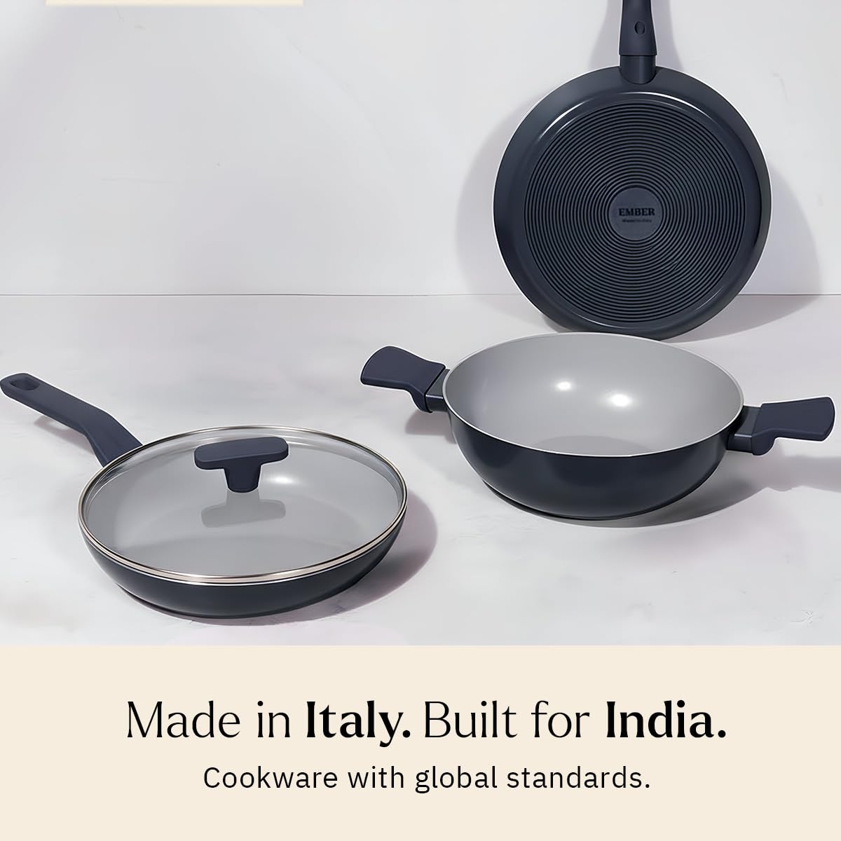 Perfect Non-Stick Cookware: Ember’s daily cookware trio set is curated for making everything from Parathas and Rotis on the Tawa, Curries and shallow-frying recipes in the Kadai to Eggs, Tikkis, searing or sauteing and stir frying in the Frypan. All the cookware pieces in this set feature a premium non-stick surface that ensures easy and even cooking.
