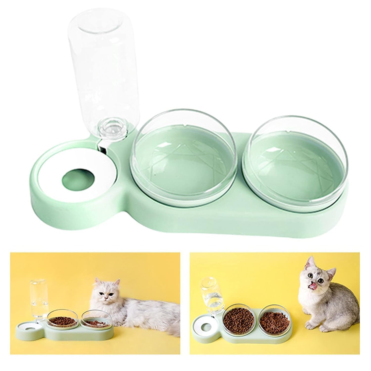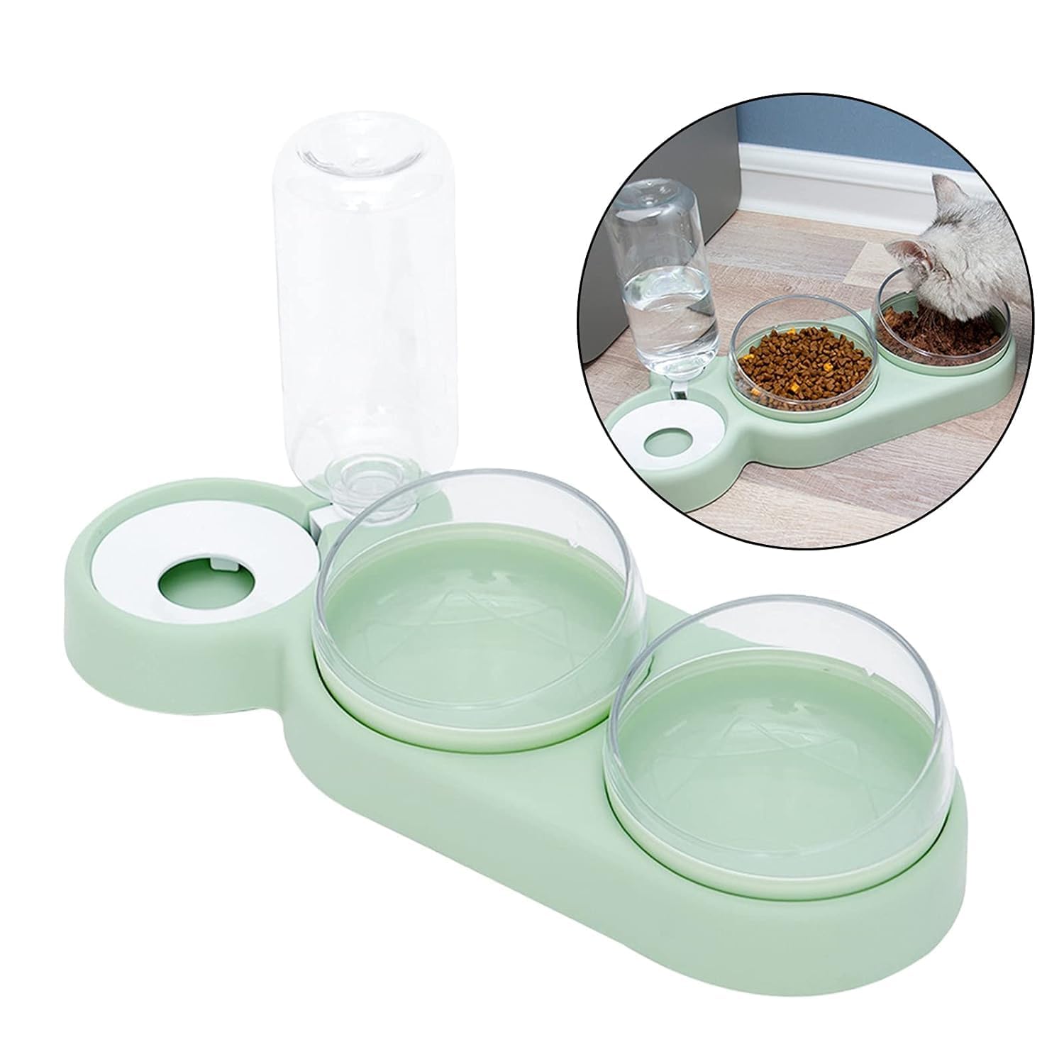 【Kitten Feeder & Water Dispenser】:- the bowls and water bottle are removable, easy to get and clean. the bowls had better be quickly rinsed or wiped clean after each use