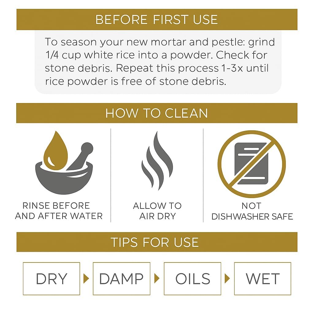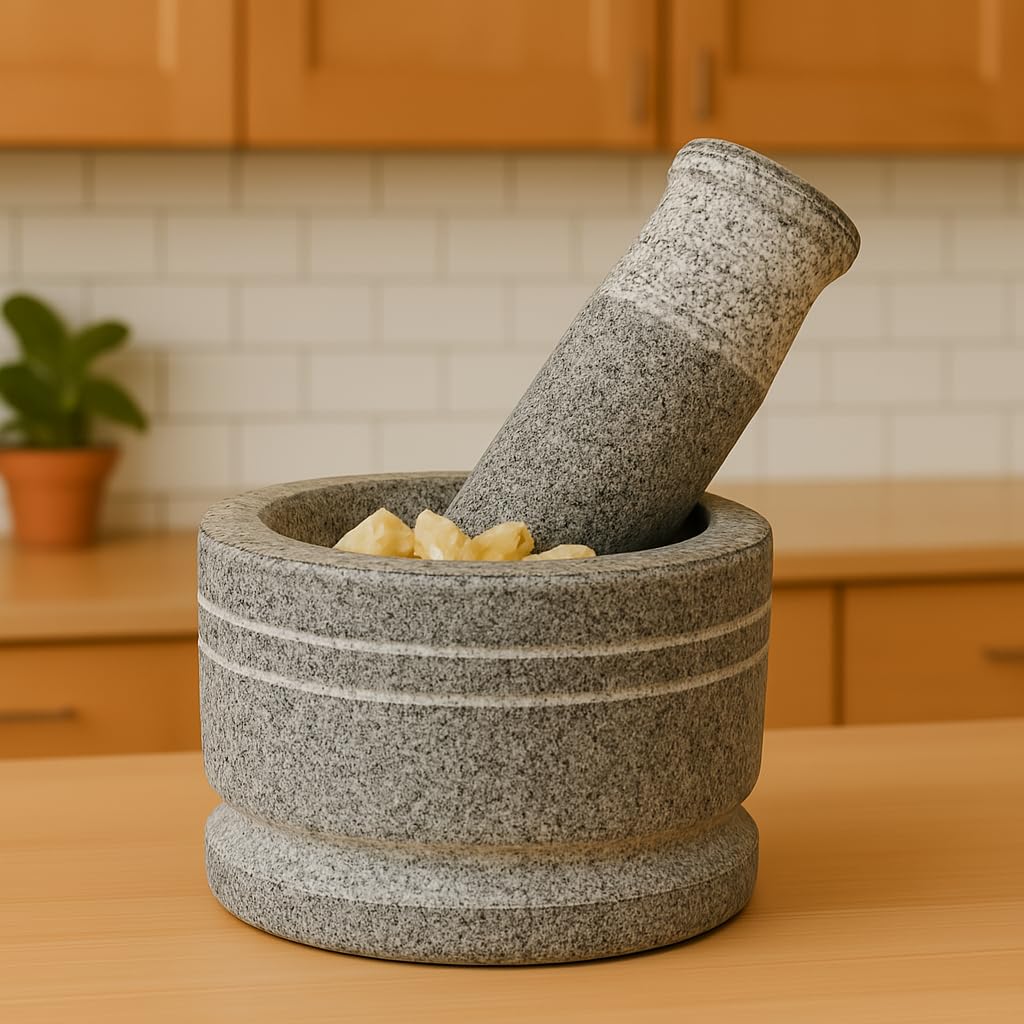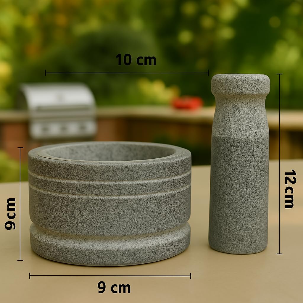Since ancient times, EZAHK Stone Mortar and Pestle have been used in the kitchen to crush and ground food and other materials into a fine paste or powder. It is helpful for crushing and grinding spices, herbs, and medications. Easy to use and convenient for kitchen and grinding needs redefines the functionality and decor of your home with hand-crafted elegance. a mortar and pestle constructed of natural grey stone, a culinary necessity. Use in pharmacies and laboratories as well. A hard bowl known as a “mortar” is often composed of pure stone. Stone mortar and pestle of excellent grade This mortar will be a larger, “4×3 inch” heavy-duty product than regular mortar. Size: ” “, Package Weight: 2.5kg, Mortar and Pestle Weight: 1.4kg. Customer service: Complete fulfilment