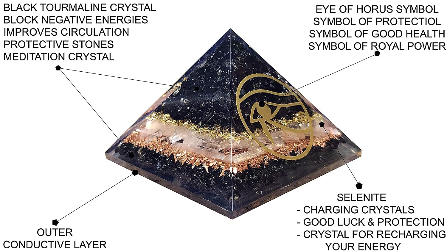 Be the first to review “Fantasy Gemstone Black Tourmaline Orgone Pyramid – Eye Of Horus Healing Crystal Generator – Yoga Meditation Reiki Gift,10 X 2 cm”