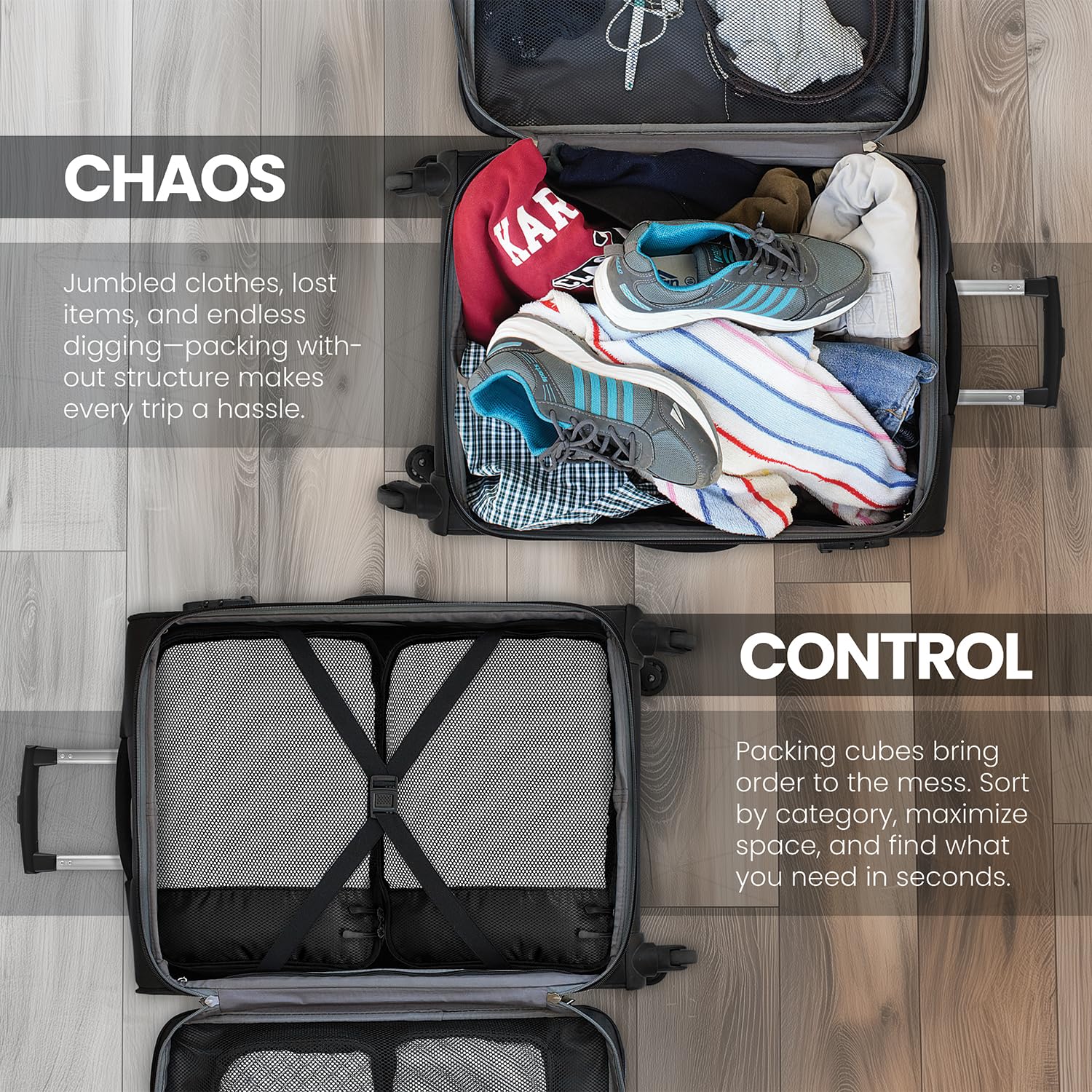 Pack your items neatly in your luggage for a short/long term travel and avoid the hassle of arranging and finding things on your vacation.