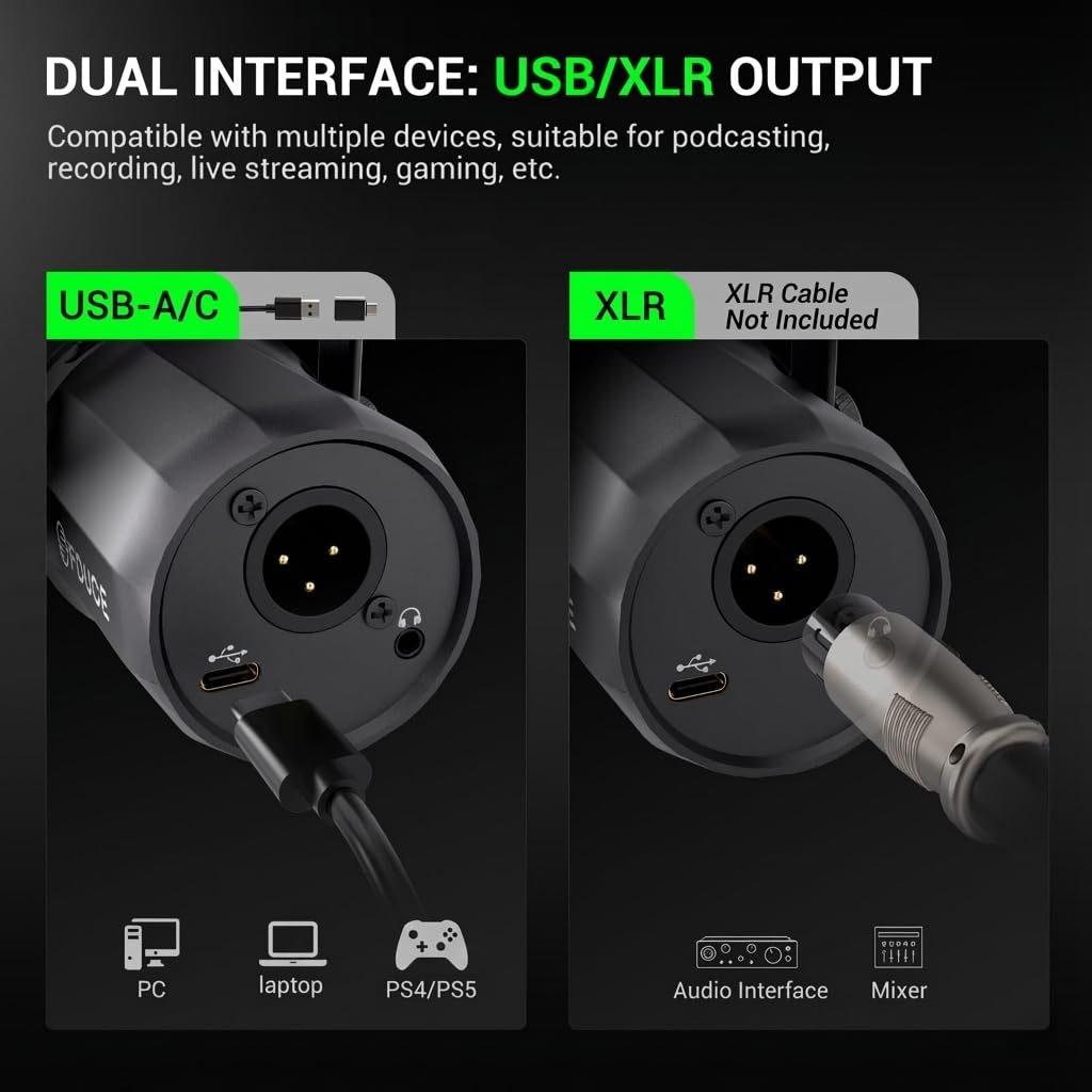 🎤Professional and clear sound: The upgraded core of the dynamic microphone supports up to 96KHz/24bit, and uses cardioid pickup to reduce environmental noise, ensuring that you can present the purest vocals in podcasting, streaming, gaming and recording.